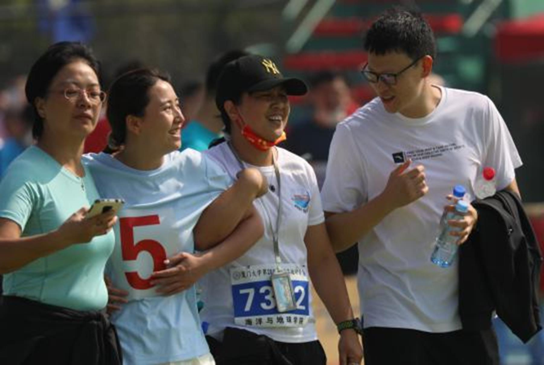 来自东山太古海洋观测与实验站的孙圣垚老师,不畏上百公里长途奔赴赛场,参加男子100米、跳远、男子4*100米,男女混合接力等多个项目,并获2项优秀,一展海洋人的矫健英姿。骆智斌老师赛前膝盖受伤,仅能勉强走动,为贯彻体育道德风尚、为了学院集体荣誉,他带伤完赛,以惊人毅力取得了400米全校第九名。