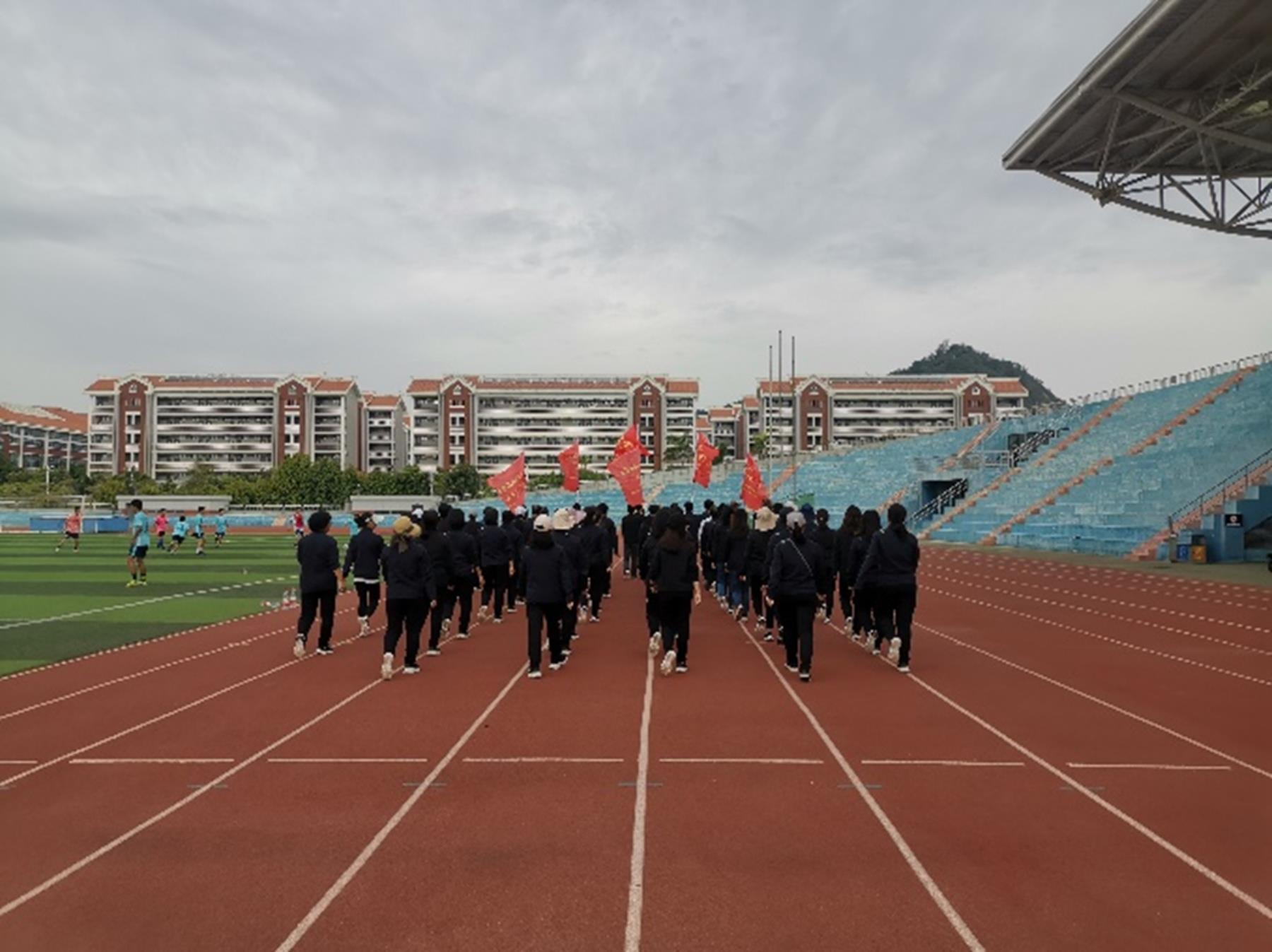 接到运动会举办通知后,学院立即启动各项筹备工作,及时发布入场式和比赛项目的报名通知,全院教职工踊跃参与,80名入场式教师,一天之内报名完成。每周二、周四中午,连续三周,共训练六次。老师们放弃午休时间,克服各种困难,顶住正午的太阳,积极参加队列训练,每一个抬腿,每一个摆臂,每一次转头,每一声口号,反复演练,仔细雕琢,把预演当实战,力臻完美,只在开幕式上展现出海洋人最好的精神面貌。