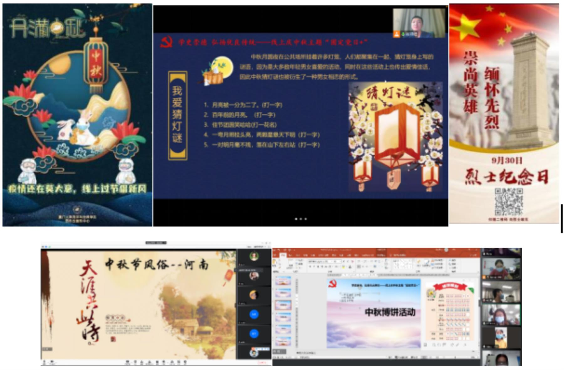 学院新媒体矩阵平台联合推出多项线上活动。“云端庆中秋”系列活动相约同学们通过小程序体验闽南特有博饼习俗,并征集展出海报、插画、诗词、摄影等线上作品。“云固定党日+”“云诗会”“云茶话会”、烈士纪念日“云祭扫”活动、国庆观影活动等正在陆续开展……情暖心怀,润物无声。系列线上活动营造了温馨和谐的氛围,引领广大师生在做好疫情防控工作的同时,提升对中华民族、中华文化的认同感和自豪感。