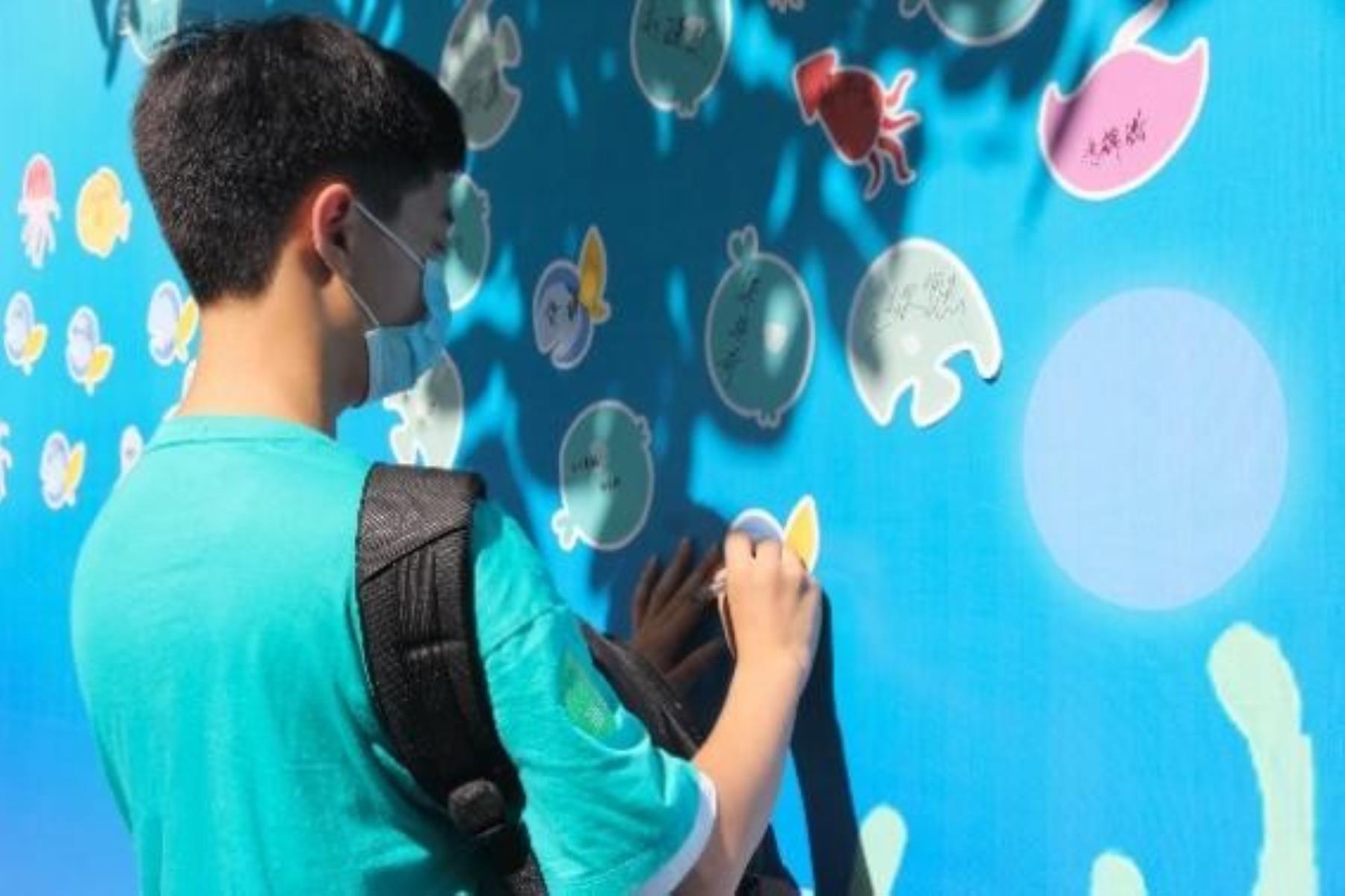 为欢迎2021“海洋小纵队”的新成员,学院在学生宿舍楼前悬挂起具有海洋特色的迎新标语——以“海”之名,“洋”梦想之帆;并设置了海洋主题签名墙,以一片海洋为主背景,同时设计了可爱的Q版海洋生物贴纸,新生们可以选取自己喜欢的贴纸,签上自己的名字,再粘贴至设计好的背景板上,代表来自不同地方、性格各异的新生,汇聚到海洋的大家庭中。这不仅彰显海洋学科特色,也为迎新工作增添了乐趣,同时也让新生感受到海洋大家庭的温暖,强化了新生的学科归属感和认同感。