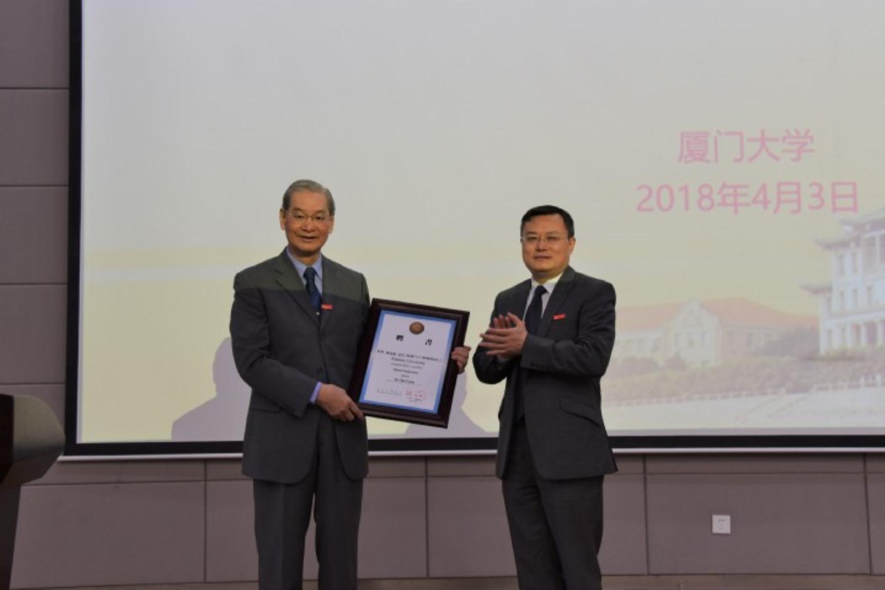 敦聘仪式上,张荣代表学校对陈运泰院士的加盟表示热烈的欢迎,他高度评价了陈院士在固体地球物理学领域作出的学术成就及杰出贡献,期望在陈院士的鼎力支持下,能进一步提升我校海洋学科发展优势、推动海洋地质与地球物理学科迅速壮大、拓宽地球科学新的发展空间。陈运泰在讲话中表达了对故乡厦门以及厦门大学的深厚情怀,对厦门大学给予的荣誉深感荣幸,他表示,未来将与各位同仁紧密合作,为促进厦大海洋学科的发展作出贡献。