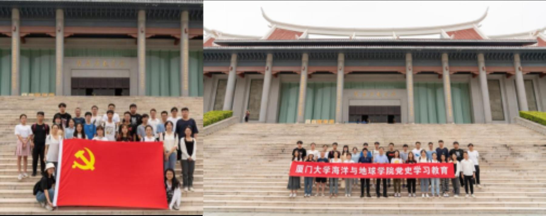 6月25日下午,海洋与地球学院鱼类生理研究生党支部和物理海洋第二研究生党支部联合开展“党史研学,追寻足迹”主题党日活动。特邀“全省党建工作样板支部”——海洋生物技术教工党支部书记徐鹏,学院“四史”学习宣讲团成员杨位迪,团委副书记蔡笑霜等三位教师党员参加。师生一行前往厦门市陈嘉庚纪念馆参观学习,并以现场教学的方式开展主题党课。