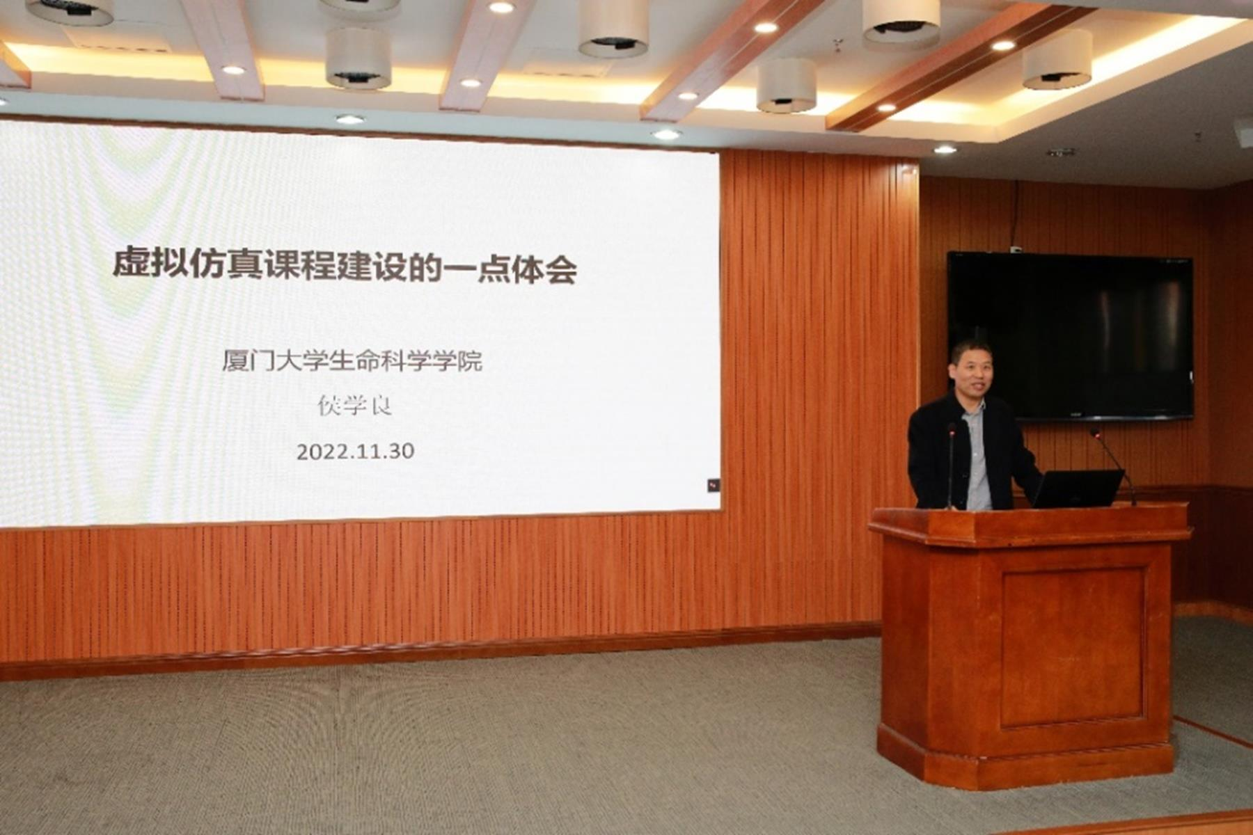 为推动学院虚拟仿真教学改革,大会还特地邀请了生命科学学院侯学良副教授作了题为“虚拟仿真课程建设的一点体会”的专题报告。侯学良以文昌鱼繁育和漳江口红树林植物学实习为例介绍了虚拟仿真项目的建设和应用,他指出了虚拟仿真课程建设的困境,同时谈到了“虚拟并不虚,虚拟仿真未来已来”的发展趋势。报告为我院虚拟仿真建设工作提供了新思路、新方法。