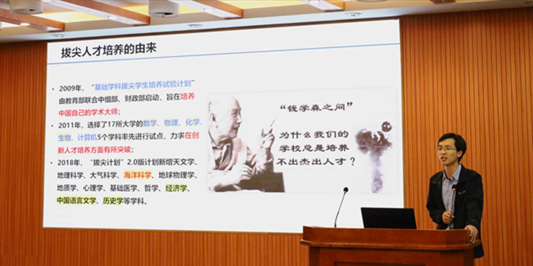 近年来,学院扎实推进拔尖基地建设、努力培养拔尖人才。拔尖班负责人简星总结并汇报了拔尖班的工作情况和创新举措,强调了拔尖海洋人才培养的重要意义,并就基地建设过程中存在的问题寻求学院老师们的宝贵建议。
