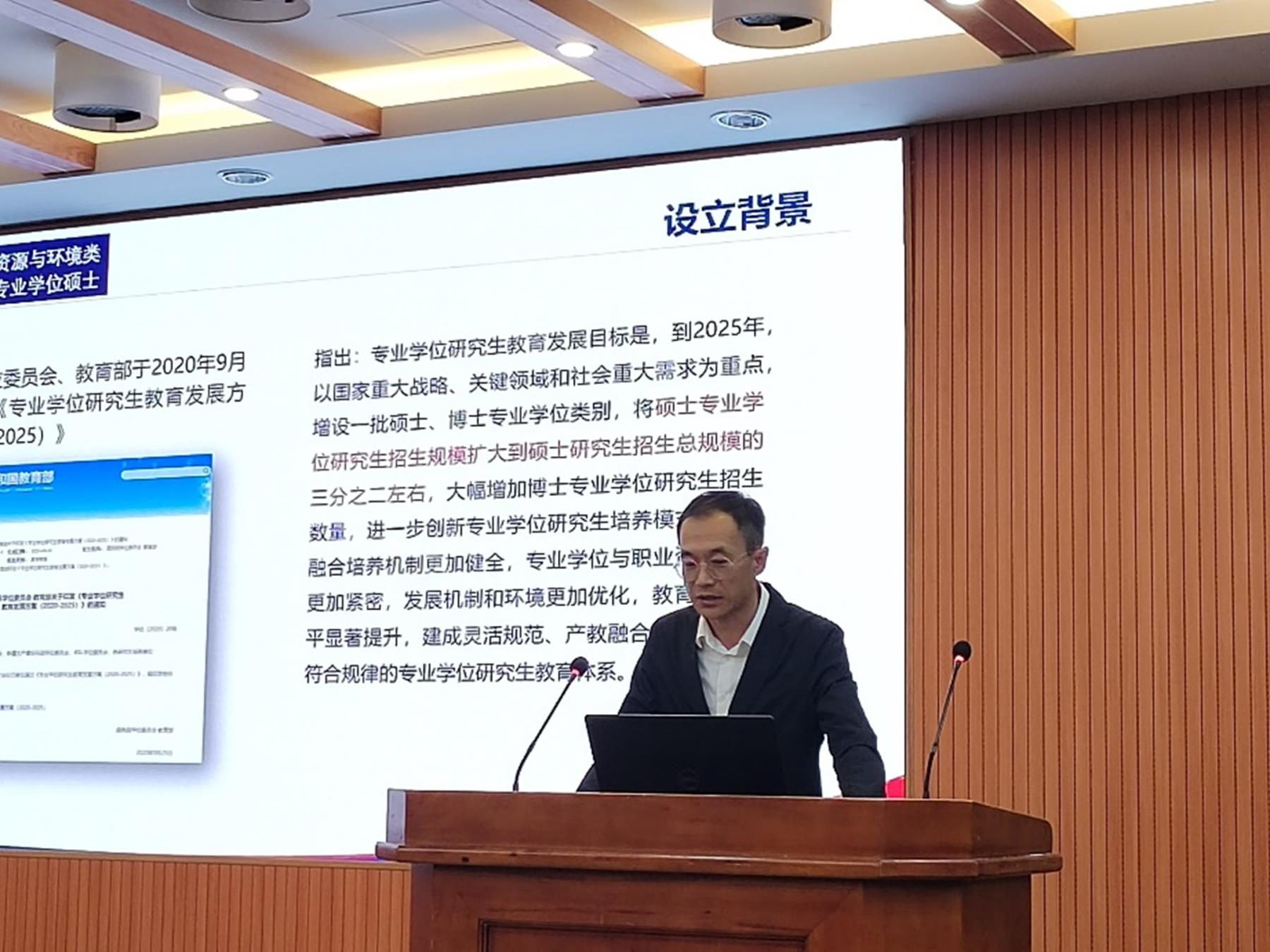 今年我院资源与环境专业硕士学位获批,2023年将迎来首次招生。负责人刘涛就专硕的设立背景、专业特色、研究方向、人员设置、培养目标及方案、招生名额分配及导师选拔等方面作了简要介绍。