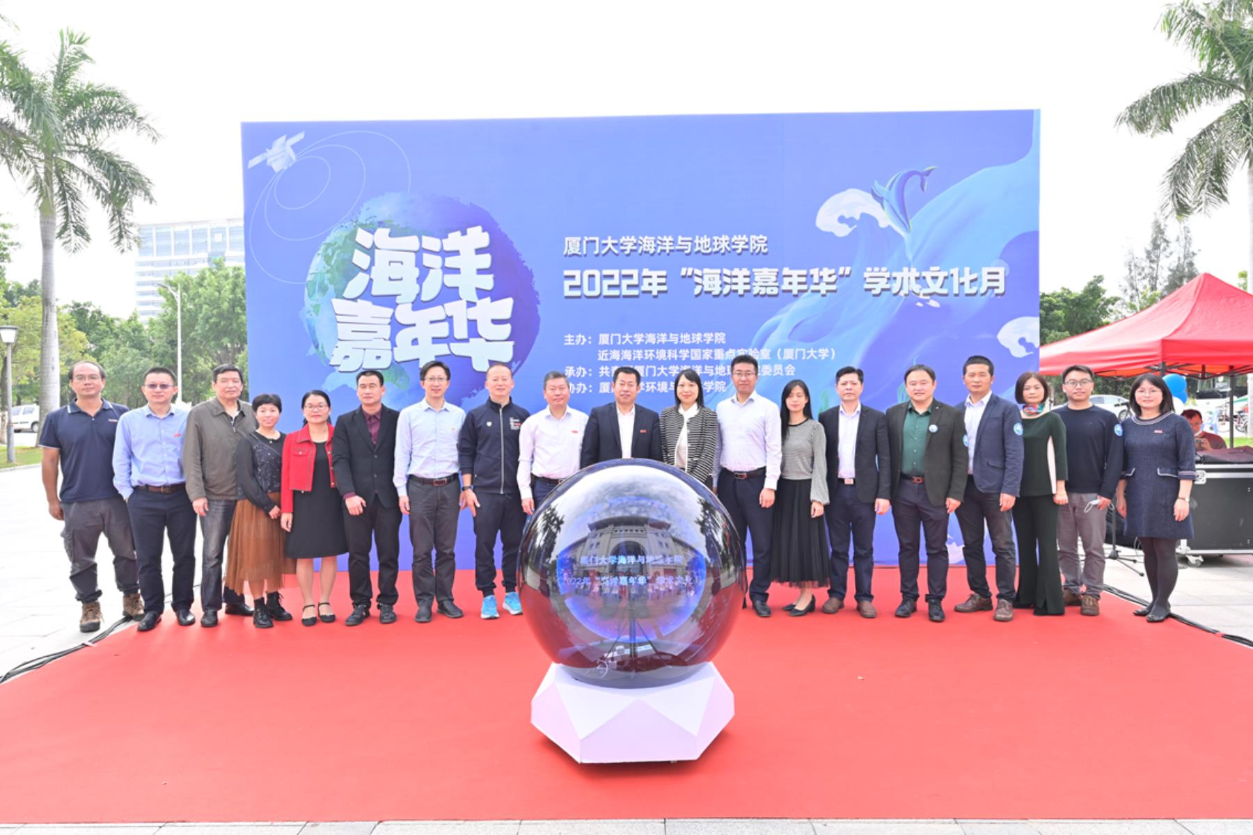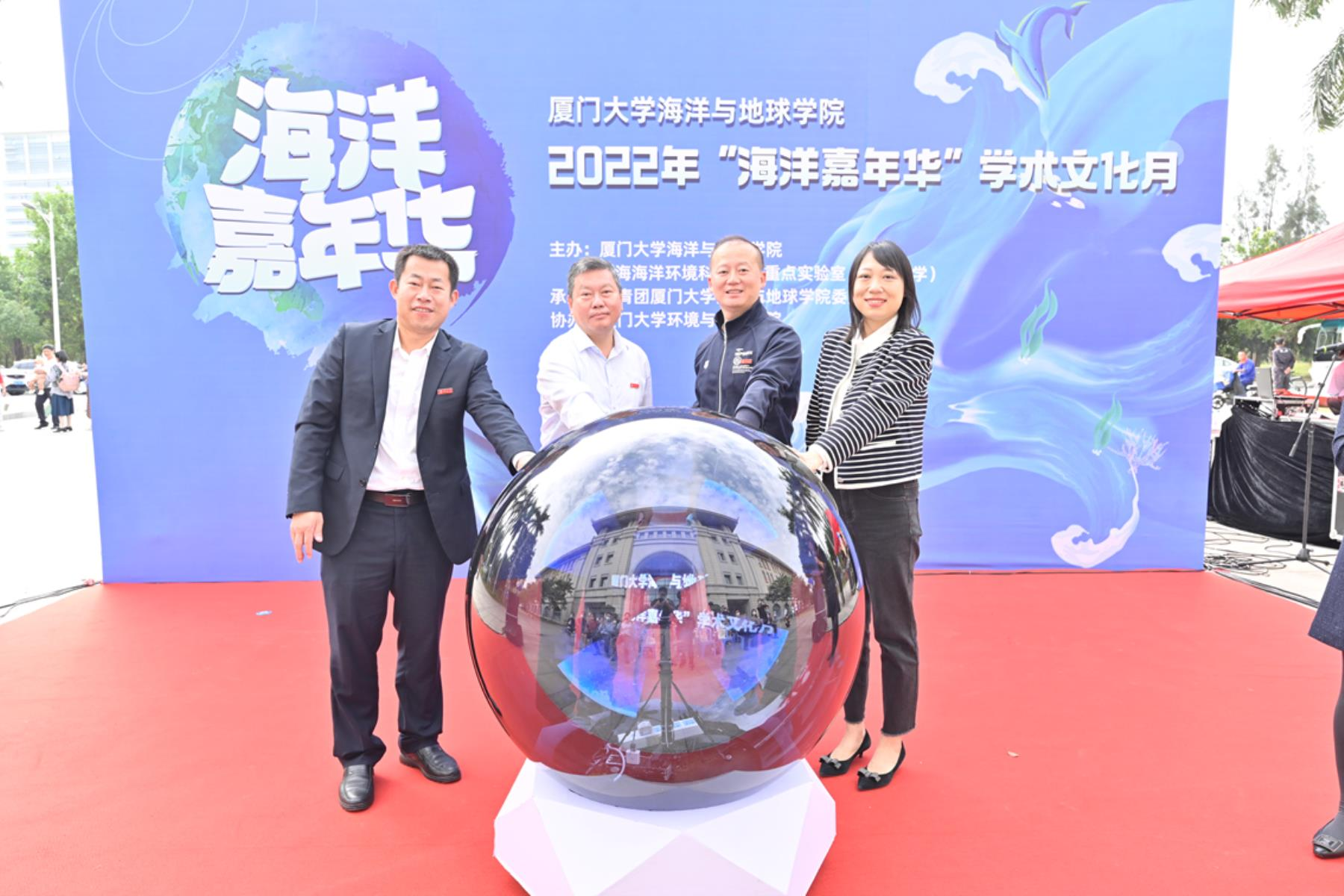 开幕式的最后,伴随着音乐,团市委学少部部长吴琦、厦门大学翔安校区管委会副主任马龙、校团委书记洪海松和海洋与地球学院党委书记吴立武一同按动启动球, 2022年“海洋嘉年华”学术文化月正式启动。
