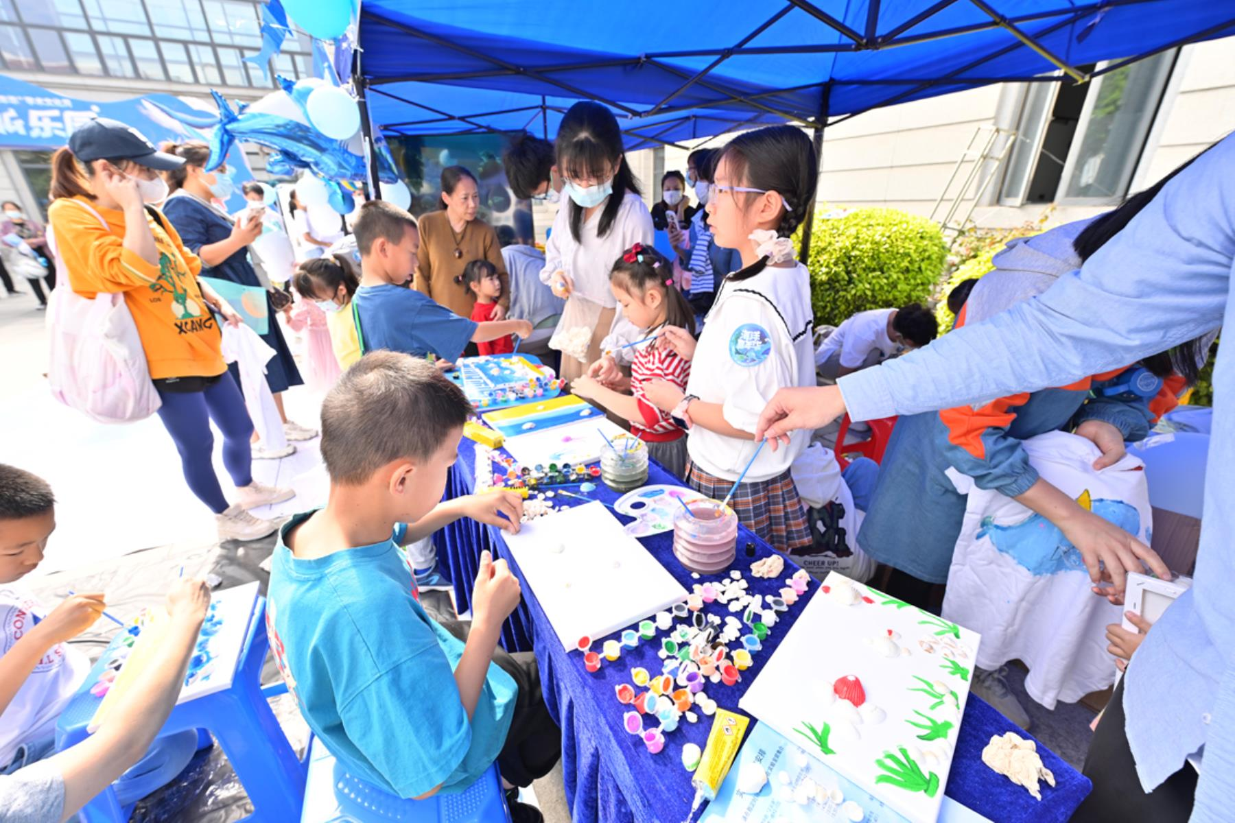 在周隆泉楼后广场的海Young乐园科普体验区,主办方设置了一系列精彩丰富的海洋互动小游戏,让参与者通过打卡游园、互动游戏的方式,深入了解海洋,探索海洋奥秘。在海洋浮标模型制作现场,孩子们亲自动手,参与制作各式各样的浮标,在收获快乐的同时,感受海洋与我们生活的点滴联系。在“深海探秘”、“走进潮间带”等小游戏中,孩子们通过螃蟹、鱼类等角色扮演,更直观地了解到潮间带生物的生存智慧,关注海洋、保护海洋的意识由此种进入人们的心田。