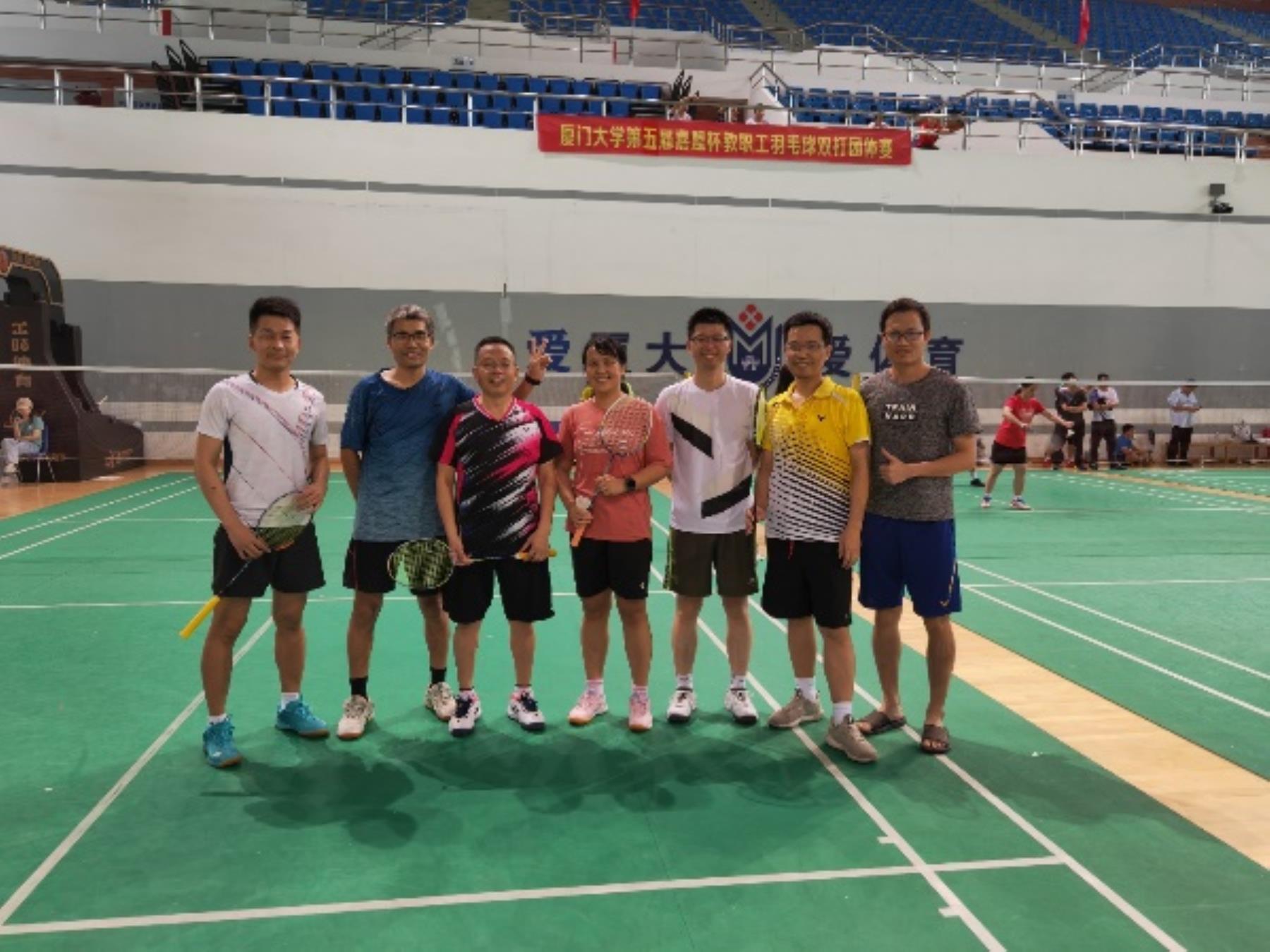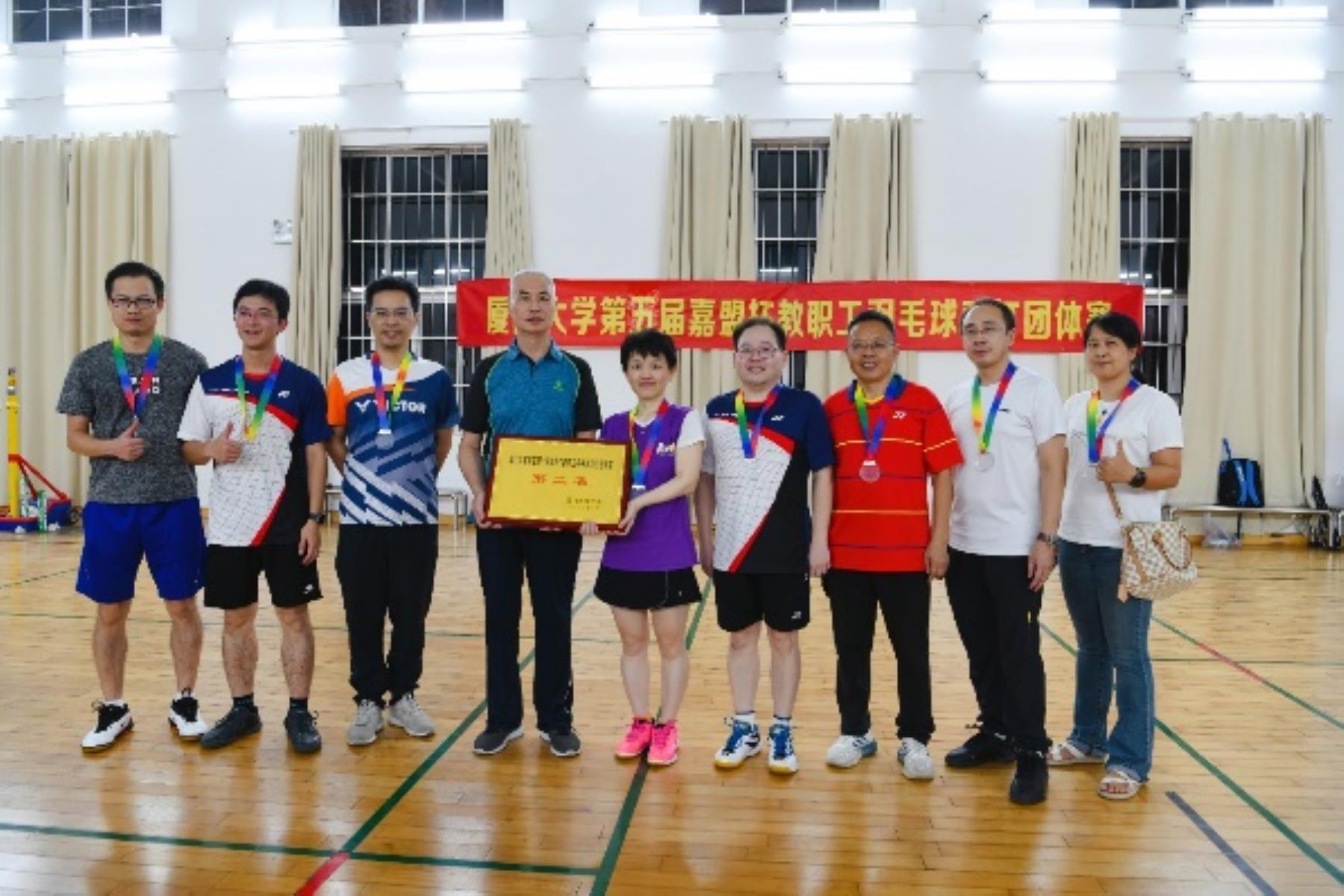 10月22日,由校工会主办、校教职工羽毛球协会承办的厦门大学第五届“嘉盟杯”教职工羽毛球双打团体赛在厦门大学翔安校区爱秋体育馆拉开战幕,来自全校各单位的32支队伍、210余名选手参加角逐,最终我院羽毛球队脱颖而出,获得亚军,这是学院历史上的最佳战绩!