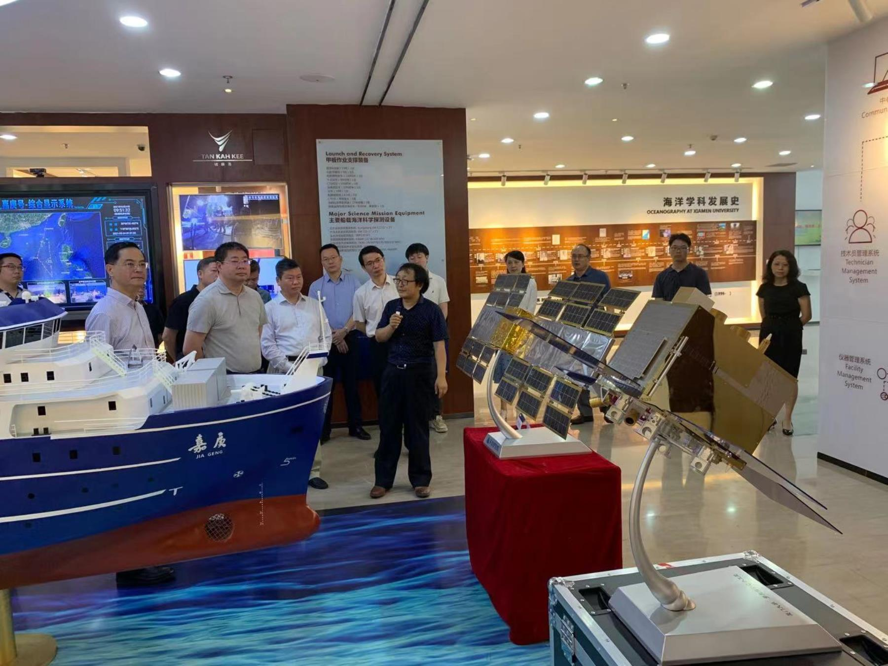 2021年5月24日上午,水利部河湖保护中心蒋牧宸主任、福建省水利厅陈水树副厅长和厦门市水利局王伟文局长一行来访我校。厦门大学邱伟杰副校长、科技处吴喜平副处长、海洋与地球学院吴立武书记代表厦门大学和海洋学科对来访单位表示热烈的欢迎。蒋主任一行参观了海洋学科发展的文化长廊,考察了现有的海洋观测手段和能力,听取了 “海丝”星座首发星“海丝一号”和“海丝二号”的初步介绍。