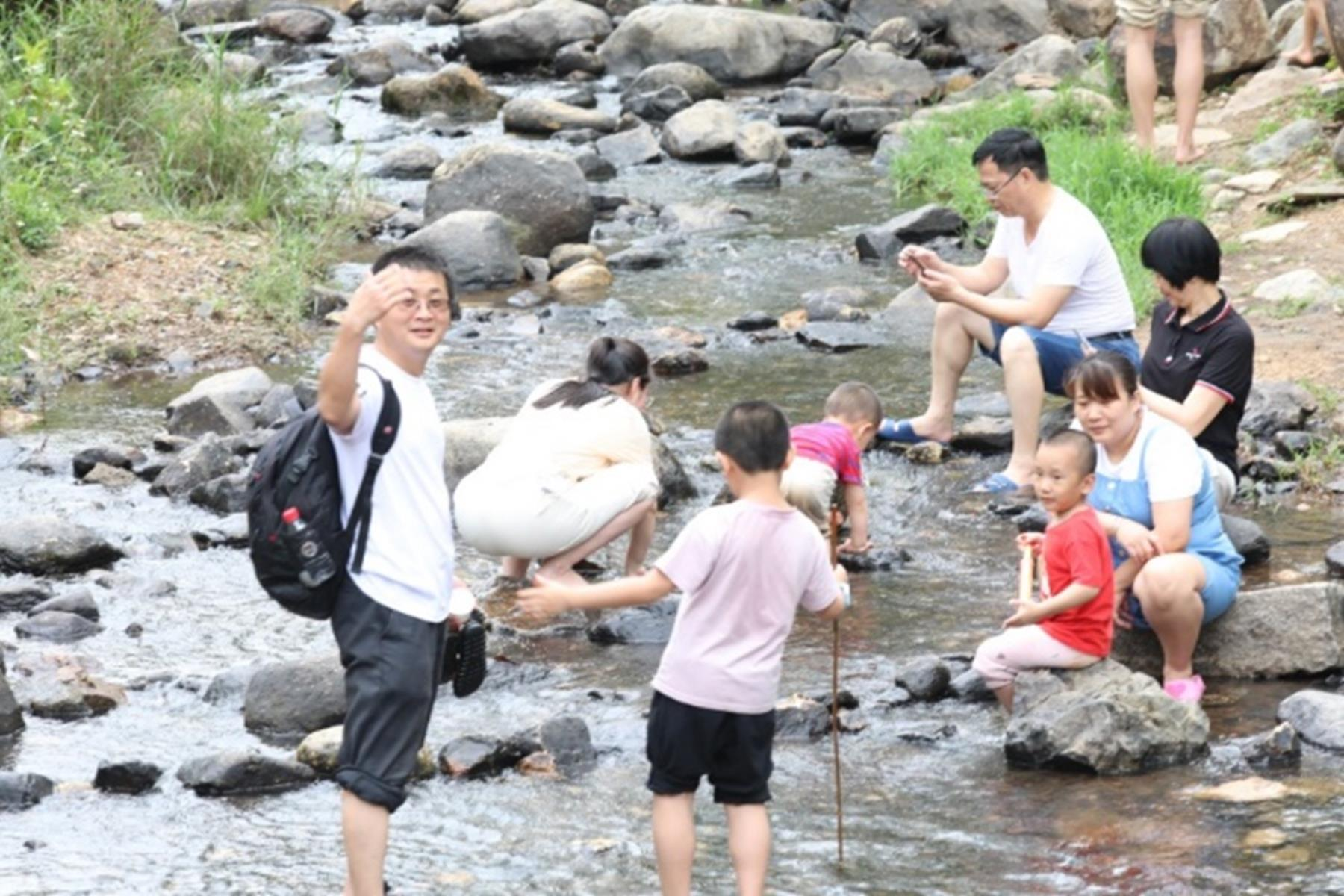 参观完党建文化基地,大家三五成群结伴朝天竺山国家森林公园进发,一路上,大家一边健步慢走欣赏美景,一边畅谈交流放松心情,欢快地行走在“天然氧吧”之中。到了花谷驿站,大家或在凉亭泡茶闲叙,或在河谷玩水嬉戏,尽情融入鸟语花香、山青水秀的大自然怀抱之中。