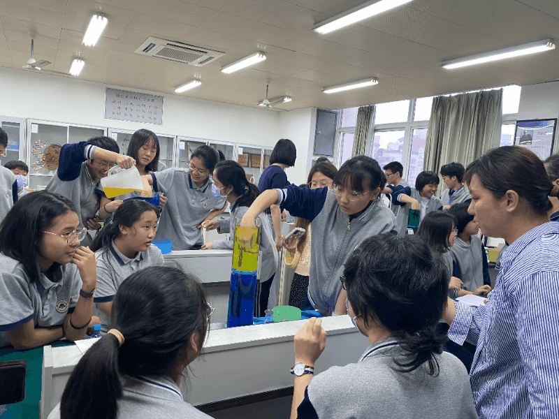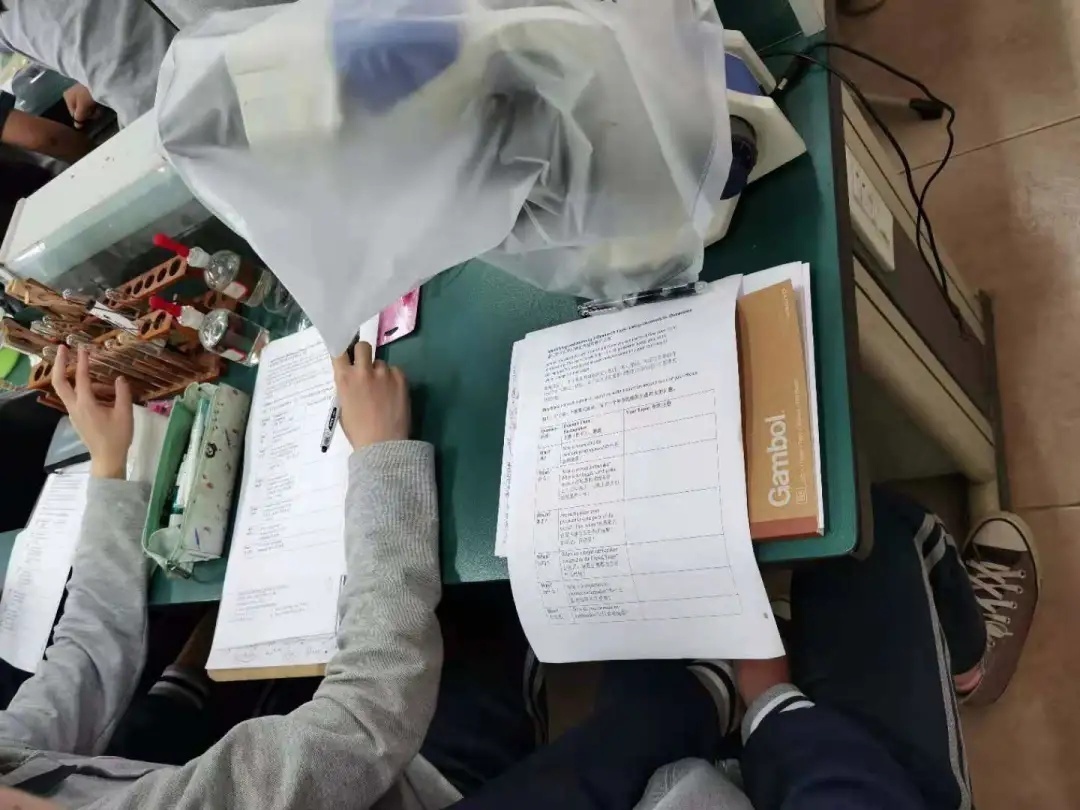 同学们跟着Emily老师一步一步探索“吸引力法则”,管子中逐渐呈现出蓝色、绿色、黄色层层交织的景象,那种变幻莫测的美,让同学们再次折服于科学的魅力。