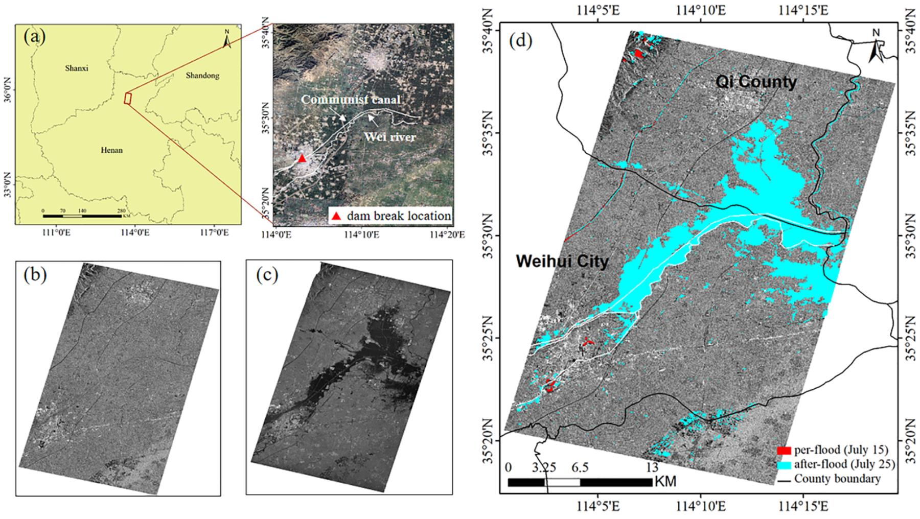 我国是洪涝灾害发生最频繁的国家之一,每年因洪涝灾害造成大量的经济损失和生态环境破坏。随着全球持续变暖,洪灾的发生强度和频次呈上升趋势,如何应对日益增加的洪灾风险成为应急救灾的重中之重。厦门大学“海丝一号”是我国首颗轻小型合成孔径雷达(Synthetic Aperture Radar,SAR)卫星,于2020年12月22日在海南文昌卫星发射中心成功发射。它可以穿透云层,具有全天时、全天候的工作能力,观测时不受云雨等天气条件及白天黑夜的限制,最高分辨率可达1 m,最大幅宽可达100 km,可为洪涝灾害监测和应急管理等提供高分辨率的SAR遥感影像。