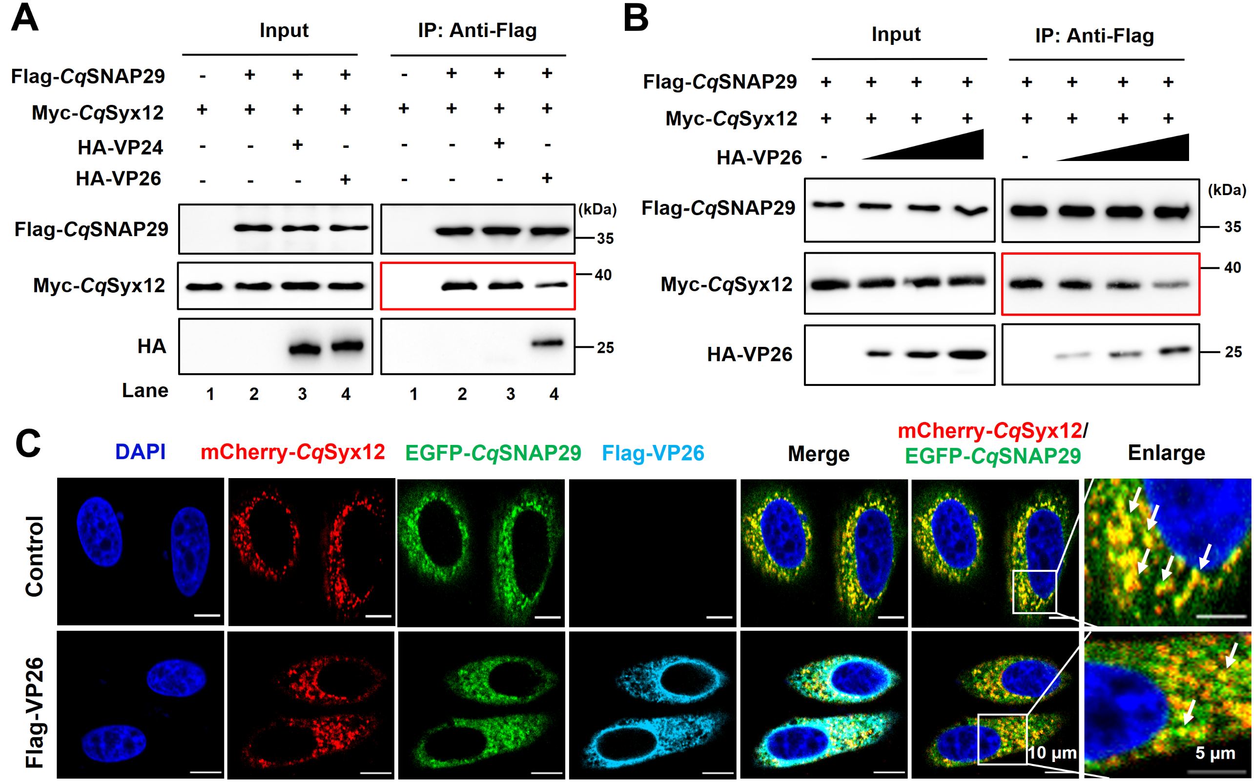 图3. WSSV-VP26抑制细胞SNARE复合物组装
