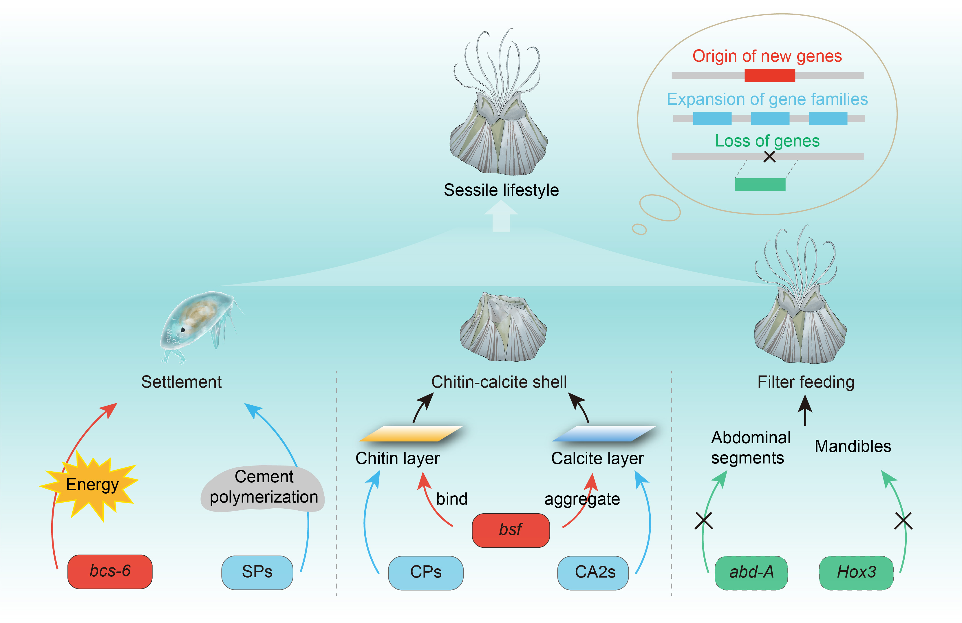 图1. 藤壶适应底栖固着生活过程中的基因进化和功能