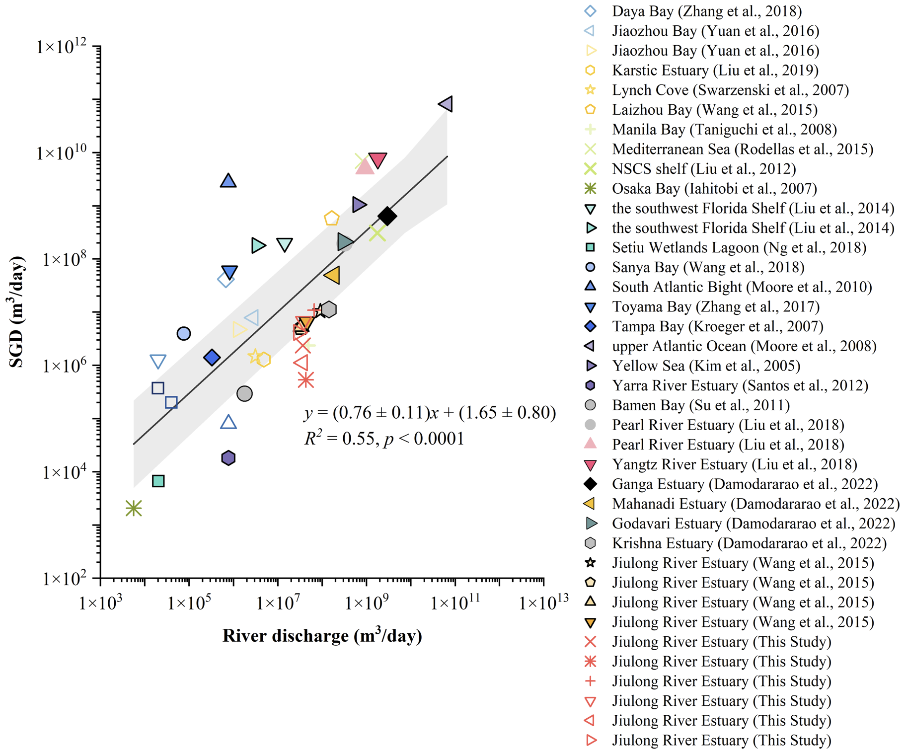 Du, M., Jin, S., Wu, S., Li, Q., Liao, Y. and Wang, G. 2024. Hydrographic proxies for submarine groundwater discharge in the Jiulong River estuary and global perspectives. Water Research, 121854. DOI: 10.1016/j.watres.2024.121854.
