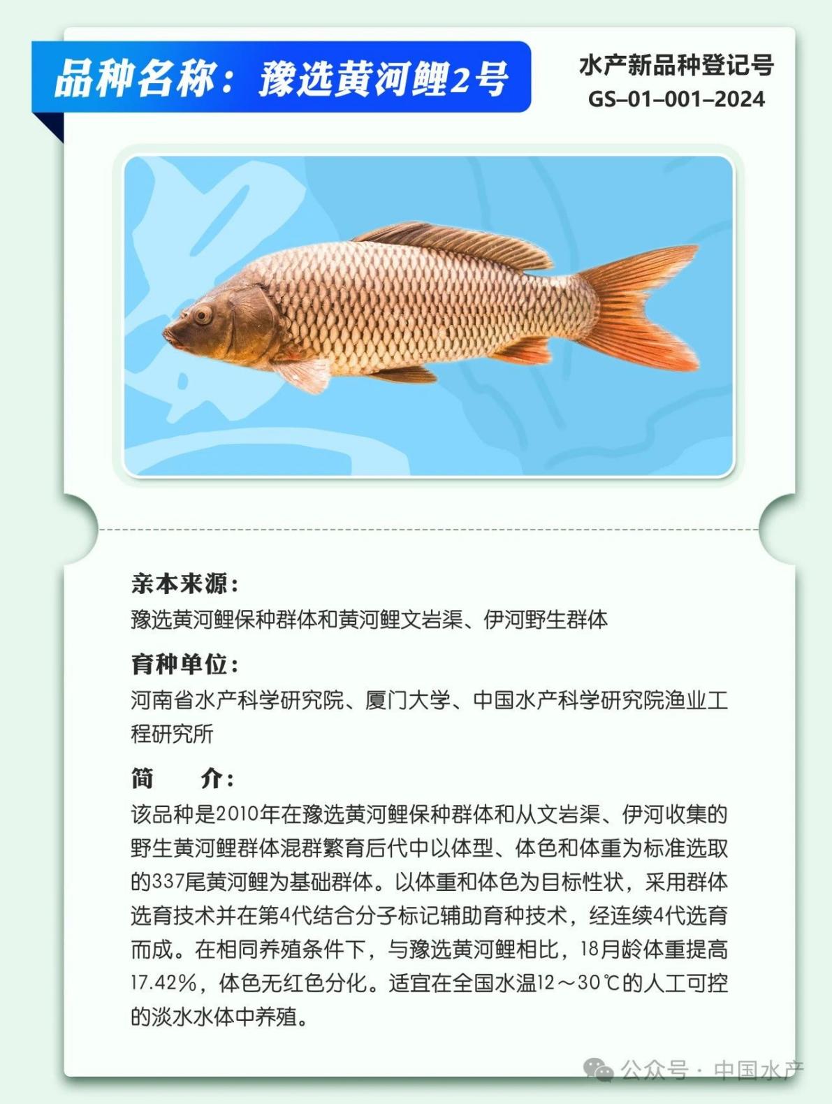 豫选黄河鲤2号是继2004年豫选黄河鲤之后,又一个通过国家审定的黄河鲤新品种,具有生长速度快、体色稳定、无鳞被分化等特点,对提升鲤鱼养殖的经济效益具有重要现实意义。