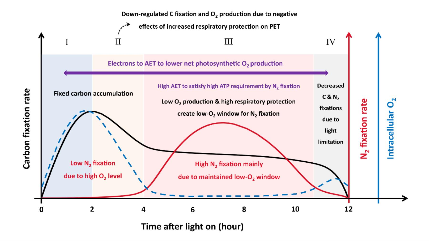 图3. 模型提出的束毛藻日间光合作用和固氮作用的共存机制