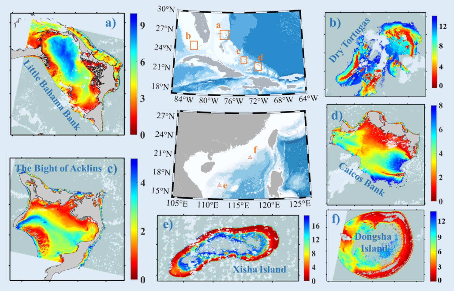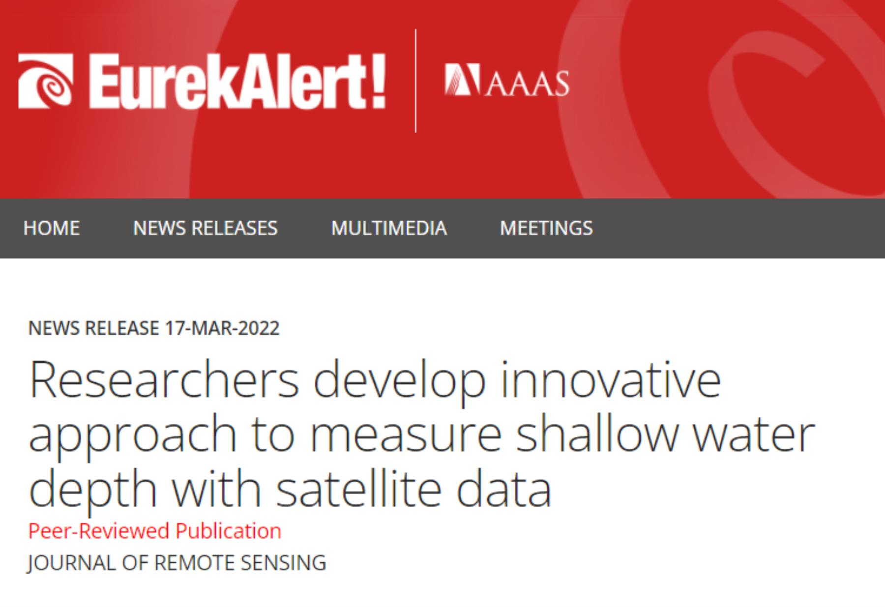 近岸浅水环境的水深信息对人类活动和科学研究具有重要意义,例如船舶航行安全、生态系统管理、可持续经济发展,以及海洋动态建模等。2022年2月3日,我院光学海洋学实验室(OOL)与马萨诸塞州立大学波士顿分校、澳大利亚西澳大学和自然资源部第二海洋研究所等单位合作,在Science合作期刊Journal of Remote Sensing上在线发表研究论文“A portable algorithm to retrieve bottom depth of optically shallow waters from top-of-atmosphere measurements”。2022年3月17日,该论文被Science publisher遴选为研究亮点予以报道。