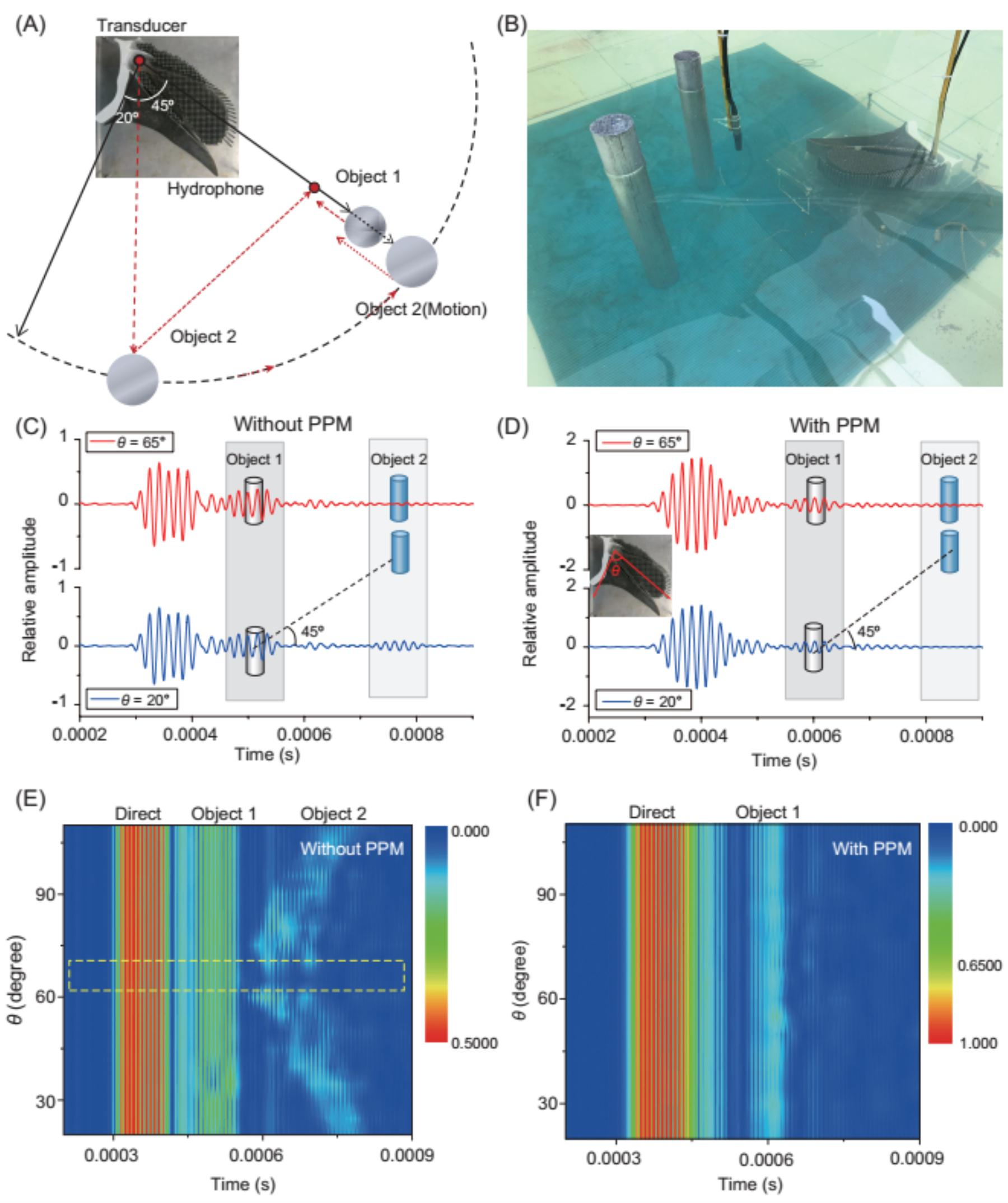 此外,该声学人工结构在抑制假目标干扰方面显示出了良好的效果,有助于提高声探测的信噪比,并区分静态目标和动态干扰物。该研究表明声学人工材料为重构江豚复杂的声学系统提供重要技术手段,在水声传感、无损检测和医学超声等领域有广泛的应用前景。此项研究成果积极扩大了厦门大学在生物声学与仿生研究的国内外影响力。