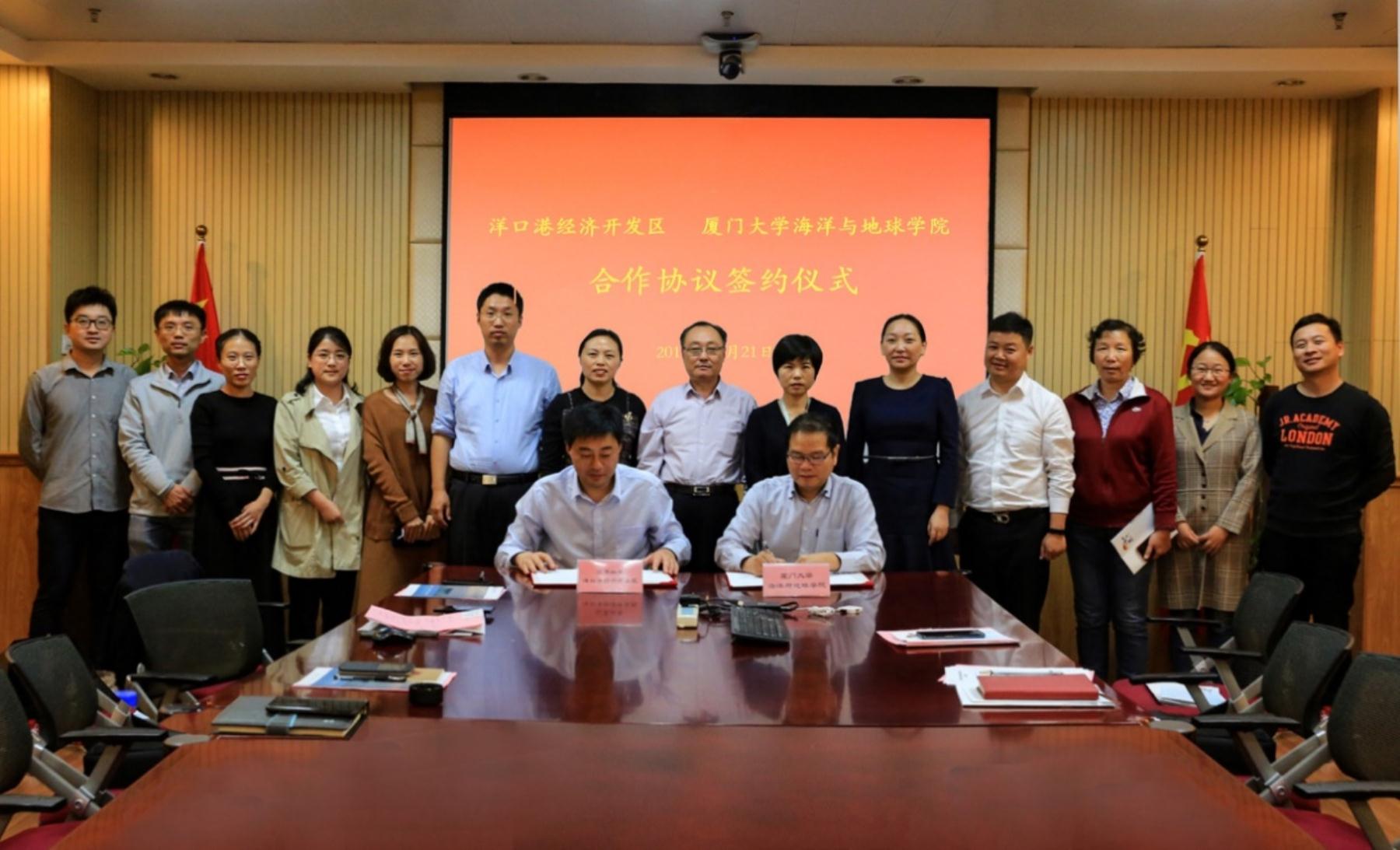 最后,柯才焕副院长代表海洋与地球学院与洋口港开发区签署了合作框架协议。双方约定,在决策咨询、科技合作、人才培育等方面加强合作,按照“产业板块+优势学科”的共赢模式,集聚创新资源,共同推动成果转化和人才培养。