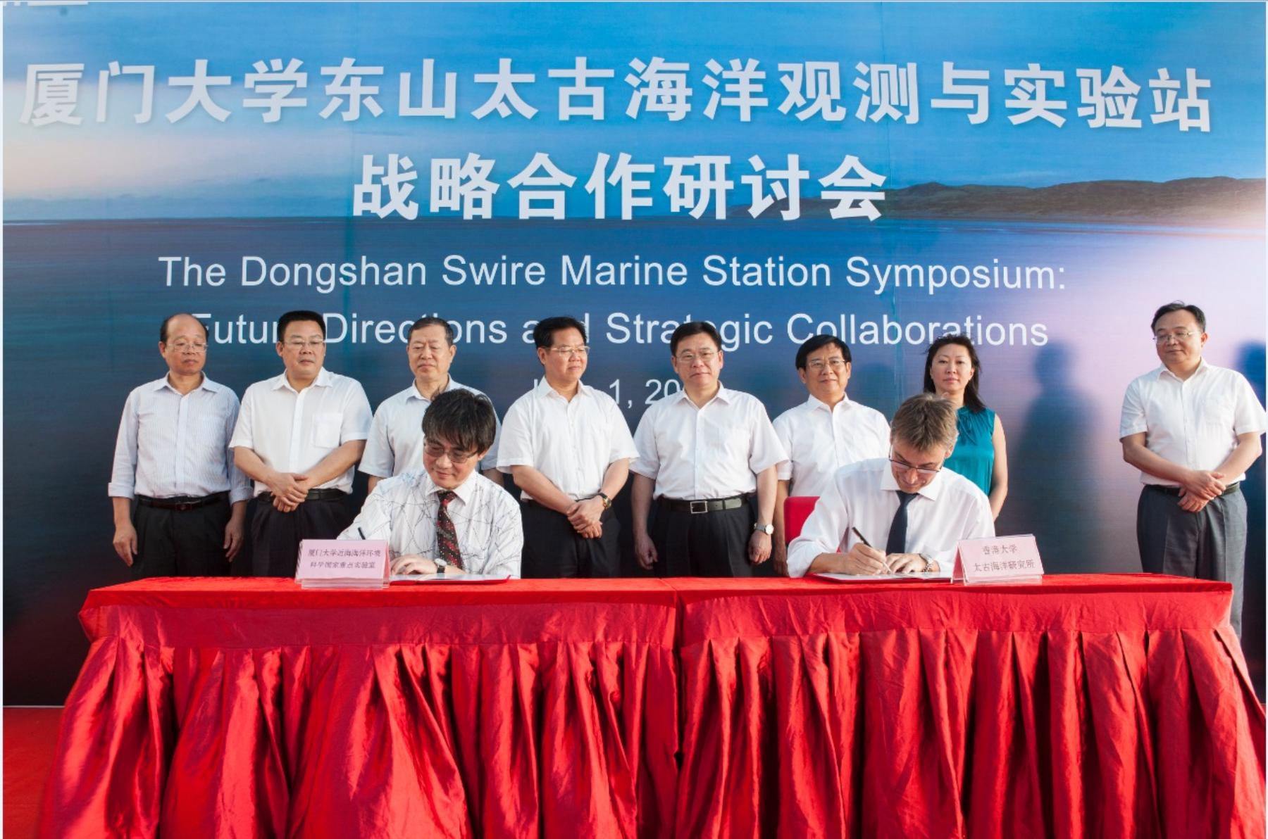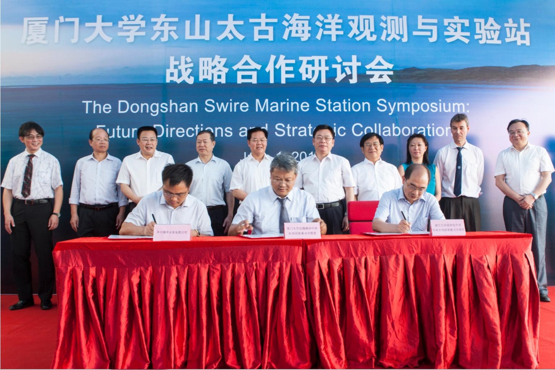 会上,厦门大学与福建省海洋与渔业厅、东山县人民政府分别签署了合作建设东山站战略合作框架协议;近海海洋环境科学国家重点实验室与香港大学太古海洋研究所、美国东北大学可持续发展研究中心、浙江大学流体动力与机电系统国家重点实验室、中天海洋系统有限公司、斯坦道仪器公司等单位就更广泛的战略合作、学术交流等方面签署了战略合作备忘录。