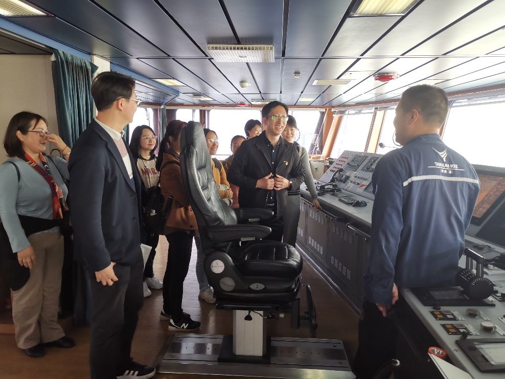 座谈会结束后,李骁麟带领大家参观了“嘉庚”号科考船的驾驶舱、各类实验室以及生活区,生动地讲解了“嘉庚”号的创建过程、运作模式以及科技影响力等,让大家深入了解了这所“海上厦大”。“嘉庚”号海洋先锋党支部书记赵振明向大家介绍了“嘉庚”号的使命,除了日常科考任务,自2018年起,它还推出“海丝学堂”人才培养计划和“海洋大讲堂”科普课程,不但着力培养海洋学科的拔尖人才,更把海洋教育课堂延伸到中、小学,为实现海洋强国的梦想全方位培养储备人才。