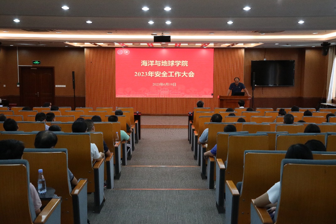 接着,邱荣锋介绍了学院安全工作体系。他指出,过去两年,学院在大量的调研和实践的基础上制定了《海洋与地球学院安全工作手册》,成立了学院安全工作领导小组,下设6个专项工作组,覆盖了学院安全工作的各个方面。在此基础上,学院梳理了工作职责,理顺了工作机制,真正做到守土有责、守土负责、守土尽责。