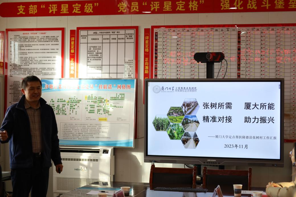 在座谈交流环节,戴立欣介绍了张树村的基本情况。他指出,在党中央的坚强领导下,在县委镇委村委的决策部署和厦门大学的定点帮扶下,张树村在推动乡村产业、人才、文化、生态、组织振兴中取得了一系列成绩。与会人员积极发言,探索党建共建新思路、新方法、新举措,把党的组织优势转化为助力乡村振兴的工作优势。