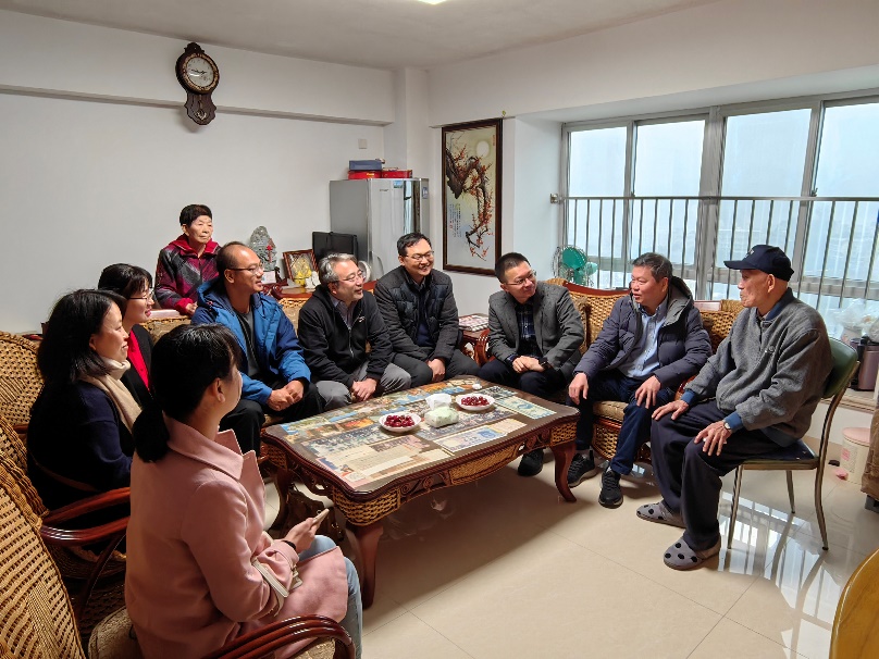 带着浓浓的新春祝福,学院为退休老师们送上最诚挚的问候。每到一户,学院领导都与退休老师握手问安,促膝交谈,关心询问他们的身体健康状况和家庭生活情况,并向退休教师们详细介绍学院的发展情况。许多老师年事已高,行动不便,学院给予特别关照,家属纷纷表示感谢学院关心和关爱。