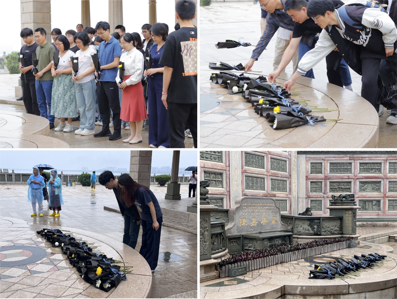 鳌园,陈嘉庚墓。微风裹挟着细密的雨点,飘洒在同志们的身上,使本就肃穆的气氛更添了几分凝重。全体党员在陈嘉庚墓前整齐列队,庄重地向校主鞠躬默哀并敬献花束,表达对校主陈嘉庚先生无限的思念、感恩和崇敬之情。地质海洋教工党支部郑杰同志动情地表示,“我们要像陈嘉庚先生一般,将爱国之情根植于血脉之中,不忘初心、牢记使命,厚植爱国情怀。”