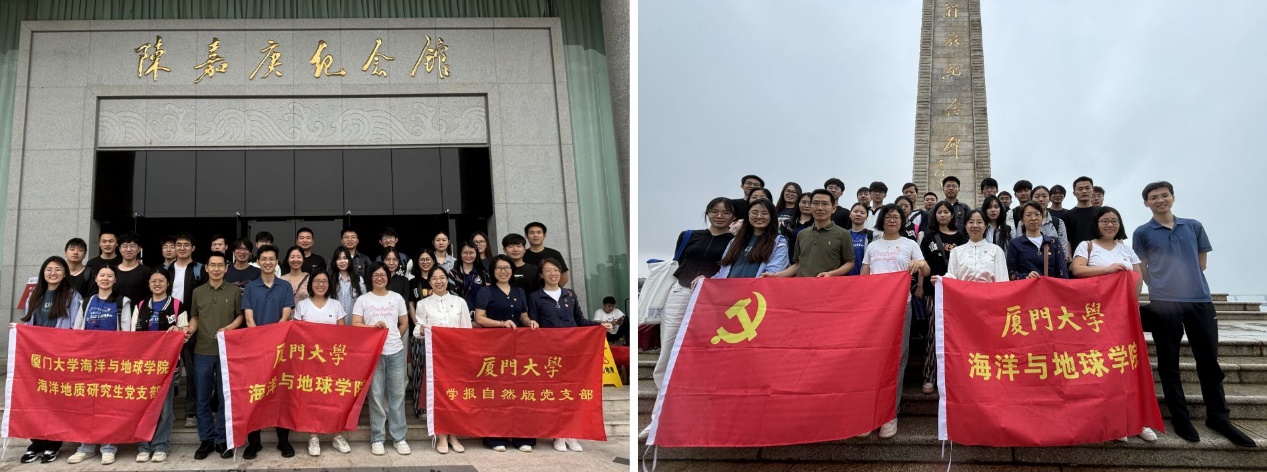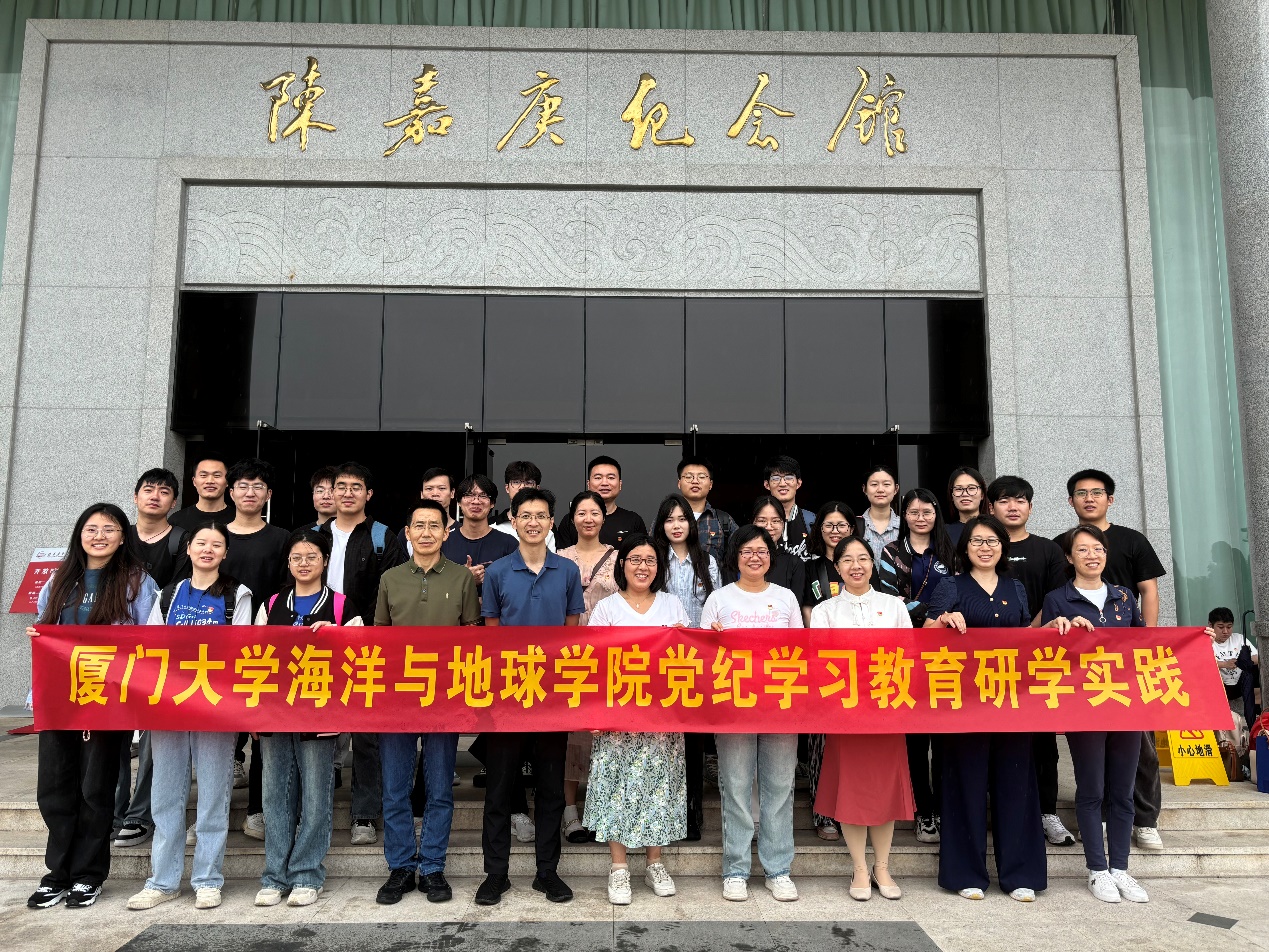 为深入学习贯彻习近平新时代中国特色社会主义思想和党的二十大精神,深入开展党纪学习教育,增强党员廉洁自律意识,进一步弘扬“嘉庚精神”,深化跨学院、跨师生党支部的“联学共建”。2024年5月30日,在陈嘉庚先生诞辰150周年到来之际,海洋地质研究生党支部、地质海洋教工党支部、厦门大学学报(自然版)党支部联合开展研学实践,全体党支部成员先后参观并瞻仰了嘉庚纪念馆和鳌园陈嘉庚墓,就《中国共产党纪律处分条例》(以下简称“《条例》”)开展学习交流。