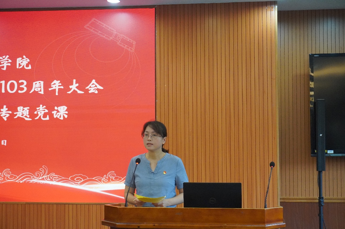 为庆祝中国共产党成立103周年,深入开展党纪学习教育,进一步强化党员教育,提升党员身份意识,6月28日,海洋与地球学院党委举办庆祝中国共产党成立103周年大会暨党纪学习教育专题党课。学院党委委员、纪委委员、海洋生物技术教工党支部、行政党支部党员、全体毕业生党员、全体新发展党员和师生党员代表100余人参加会议。活动由学院党委副书记唐腾凤主持。