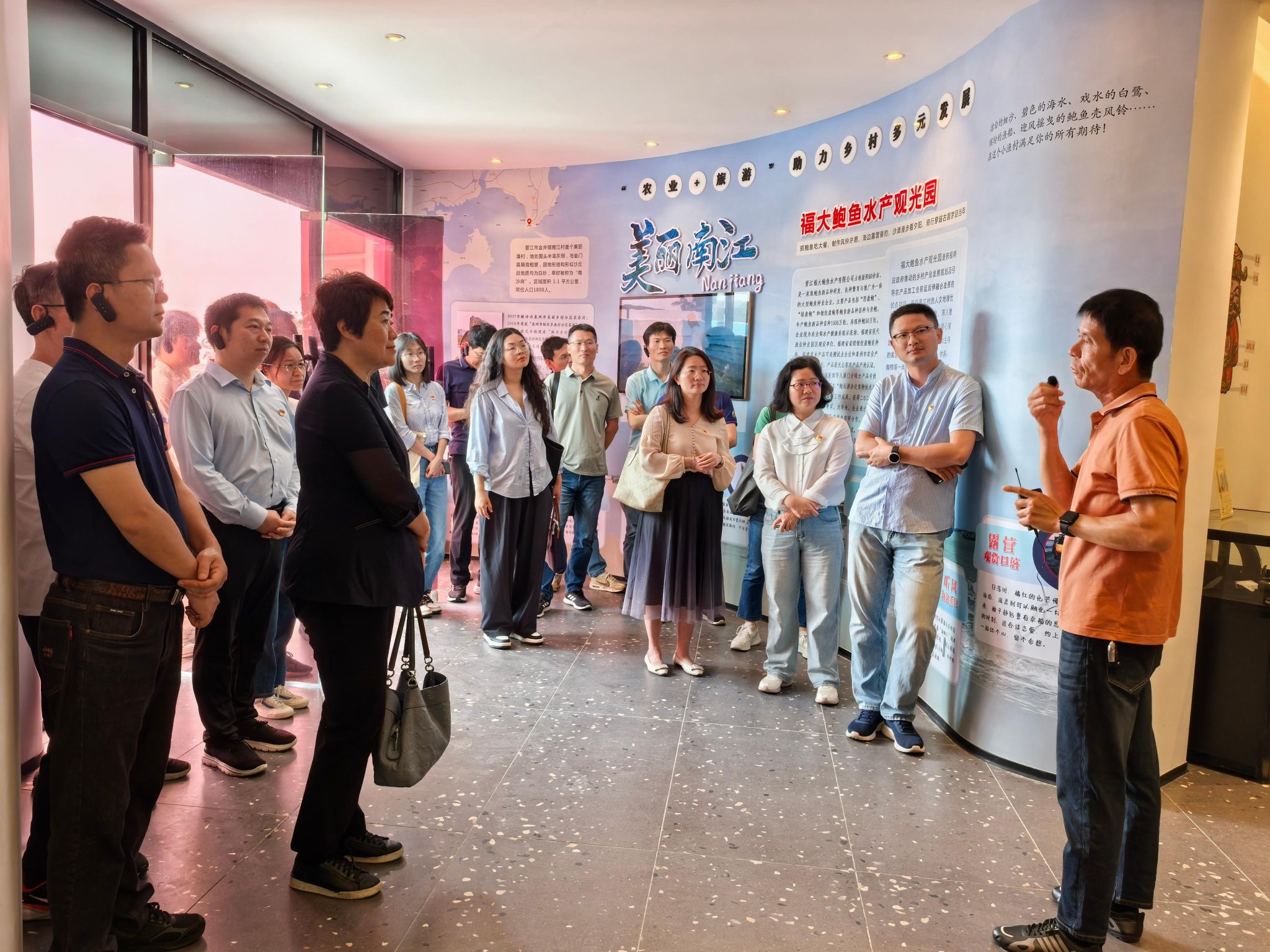 当天下午,学员们来到晋江市金井镇南江村参观晋江福大鲍鱼水产有限公司。公司副总经理王权带领学员实地考察鲍鱼育种、育苗车间和养殖基地,详细介绍了企业在现代鲍鱼种业体系建设中开展的各项工作。