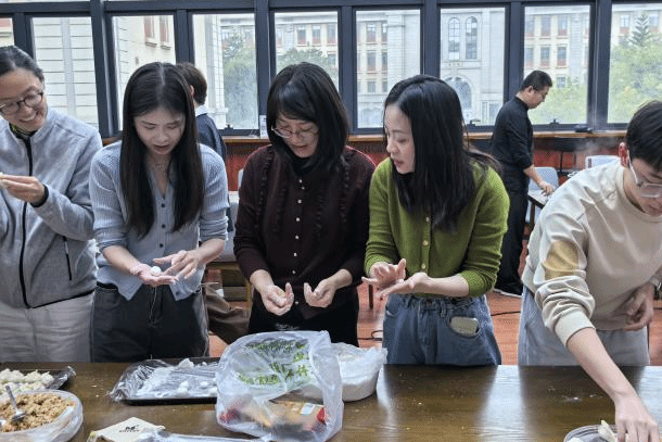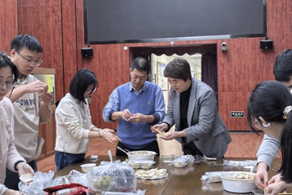 随后,活动地点转移至周隆泉楼咖啡厅,进入传统美食体验环节。现场洋溢着温馨愉悦的气氛,大家围坐在一起,亲手制作象征团圆与温暖的冬至饺子和汤圆,在协作中增进了解,在欢笑中加深情谊,共同营造了一个其乐融融、充满温暖的 “支部大家庭”。