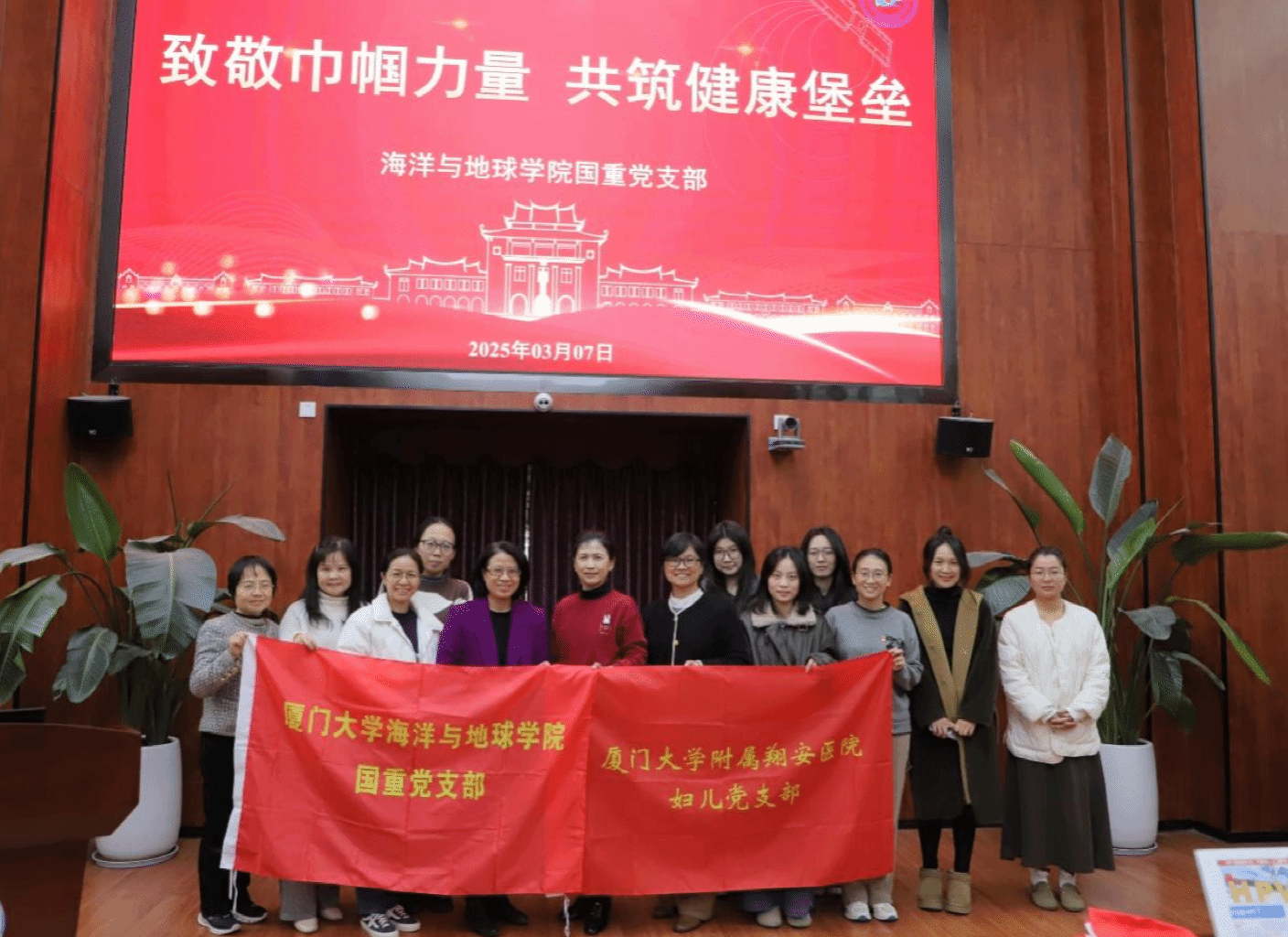 为深入学习贯彻党的二十大精神和党的二十届三中全会精神,贯彻落实习近平新时代中国特色社会主义思想,紧扣健康中国战略主题,同时为庆祝第115个国际劳动妇女节,2025年3月7日,国重党支部以“致敬巾帼力量 共筑健康堡垒”为主题,联合厦门大学附属翔安医院妇儿党支部开展主题党日活动。活动通过榜样学习、专题讲座、健康咨询等环节,为全院女性教职工搭建健康交流平台,凝聚巾帼智慧,助力教育强国建设。学院党委副书记陈向柳参与本次活动。