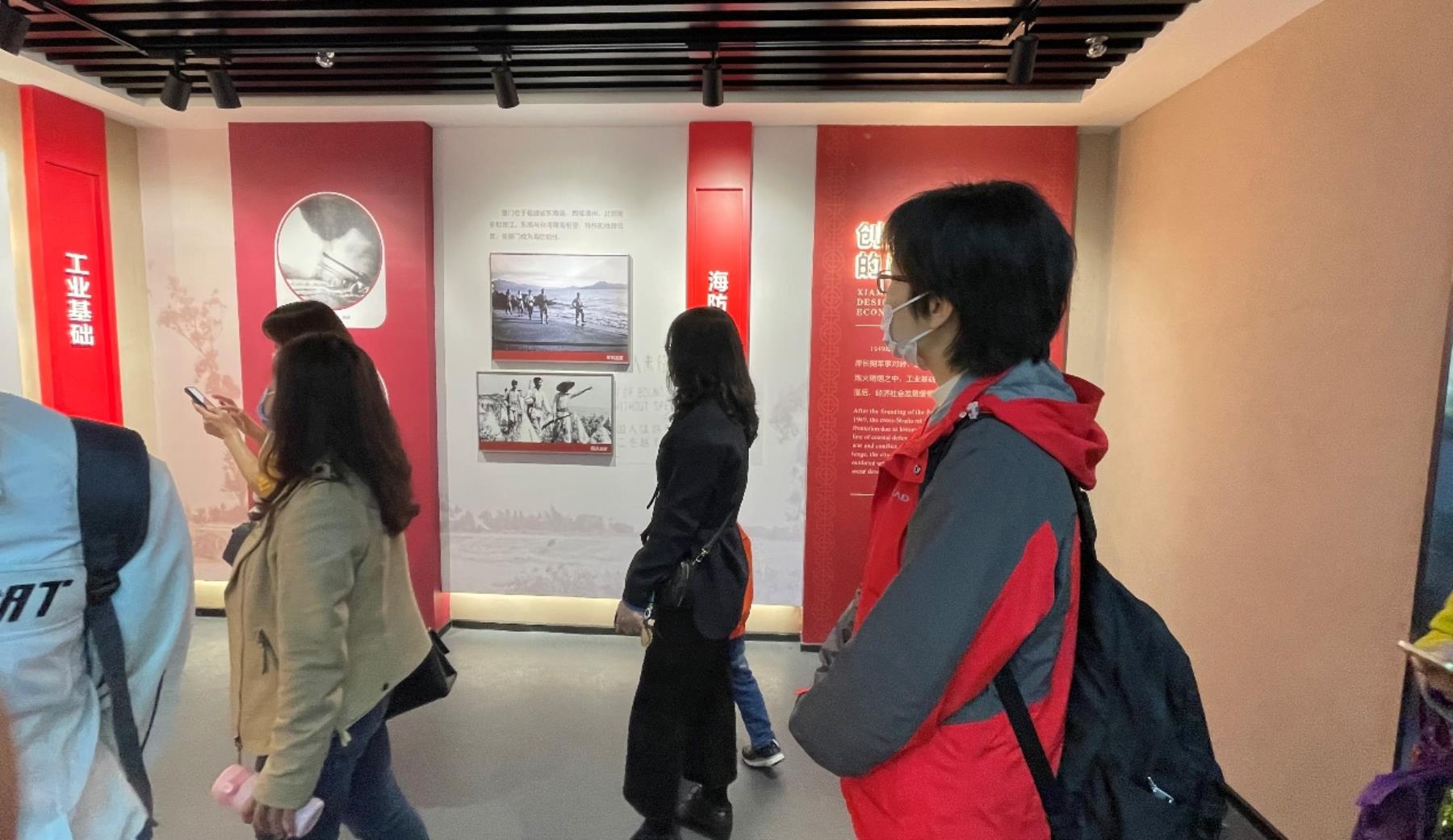 支部党员集体参观了“大厦之门 敢拼会赢——厦门经济特区建设历史陈列”主题展览,展览融合了裸眼3D大屏、多媒体沙盘、沉浸式空间、触屏互动、音视频放映、滑轨屏互动等多媒体展项,生动还原湖里开山第一炮、筼筜湖治理等厦门经济特区建设历程中的重大历史场景,给大家带来身临其境的体验。