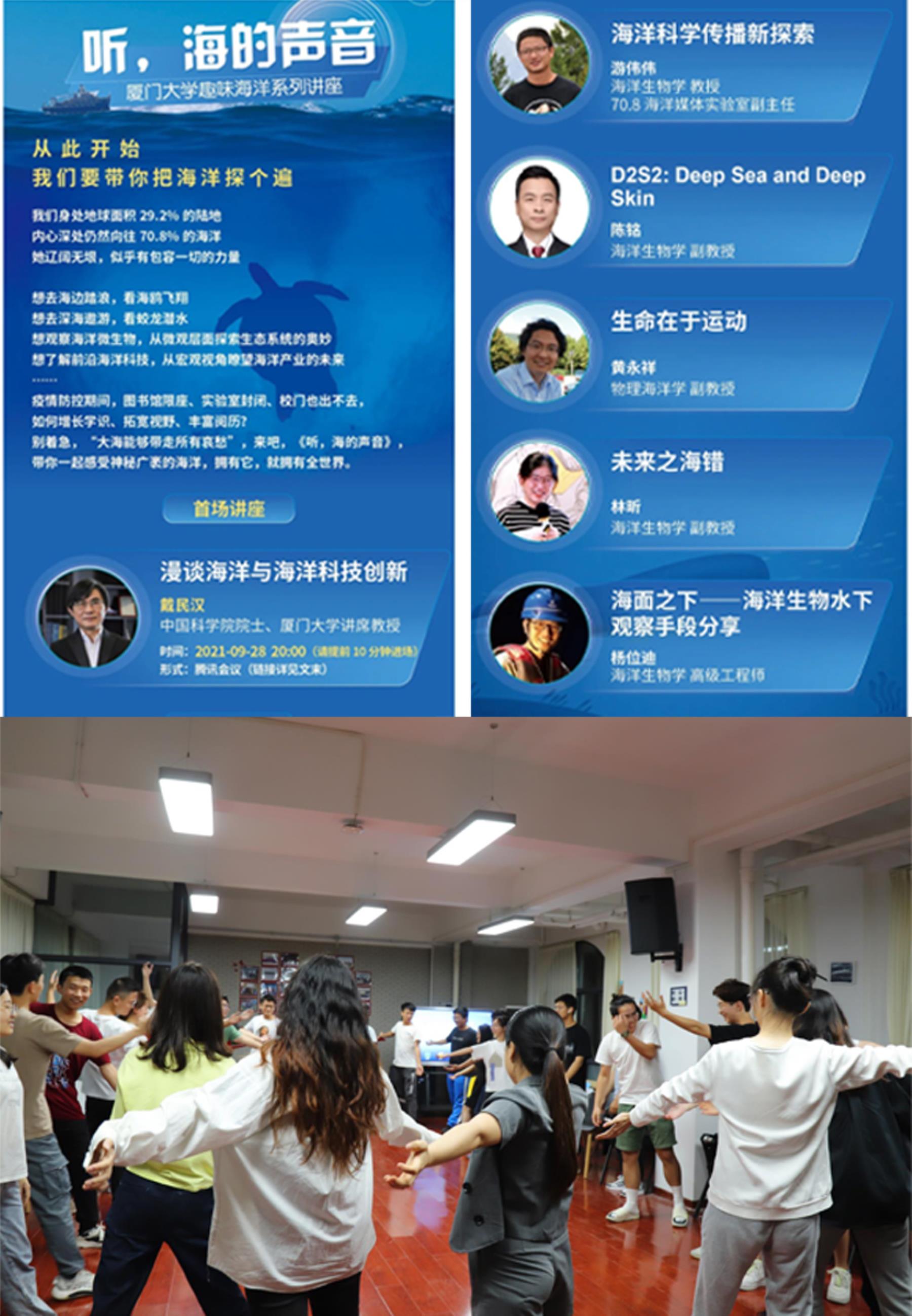 增强青年学生获得感。组织开展实验技能大赛、海洋知识竞赛、海洋文化科技创新创意大赛、贝壳设计大赛等,提高学生运用海洋科学知识的能力;在第七届厦门大学“互联网+”大学生创新创业大赛中,学院获优秀组织奖,并获主赛道一金一铜、红旅赛道一银佳绩。常态化邀请国内外专家学者,打造“周一午餐交流会”品牌项目,促进学生-教师面对面交流;推出“听,海的声音”系列讲座,邀请戴民汉院士等8位教师,带领学生探索海洋奥秘,增强学生科研学术获得感。举办海洋学科重点单位系列招聘、就业主题专场辩论赛、国家就业政策宣讲会、职业生涯规划赛、创业沙龙等,增强学生生涯发展获得感。举办“向洋而生,从心出发”健康教育系列活动,开展心理游园会、心理月观影等活动,增强学生身心健康获得感,为学生成长成才全方位保驾护航。