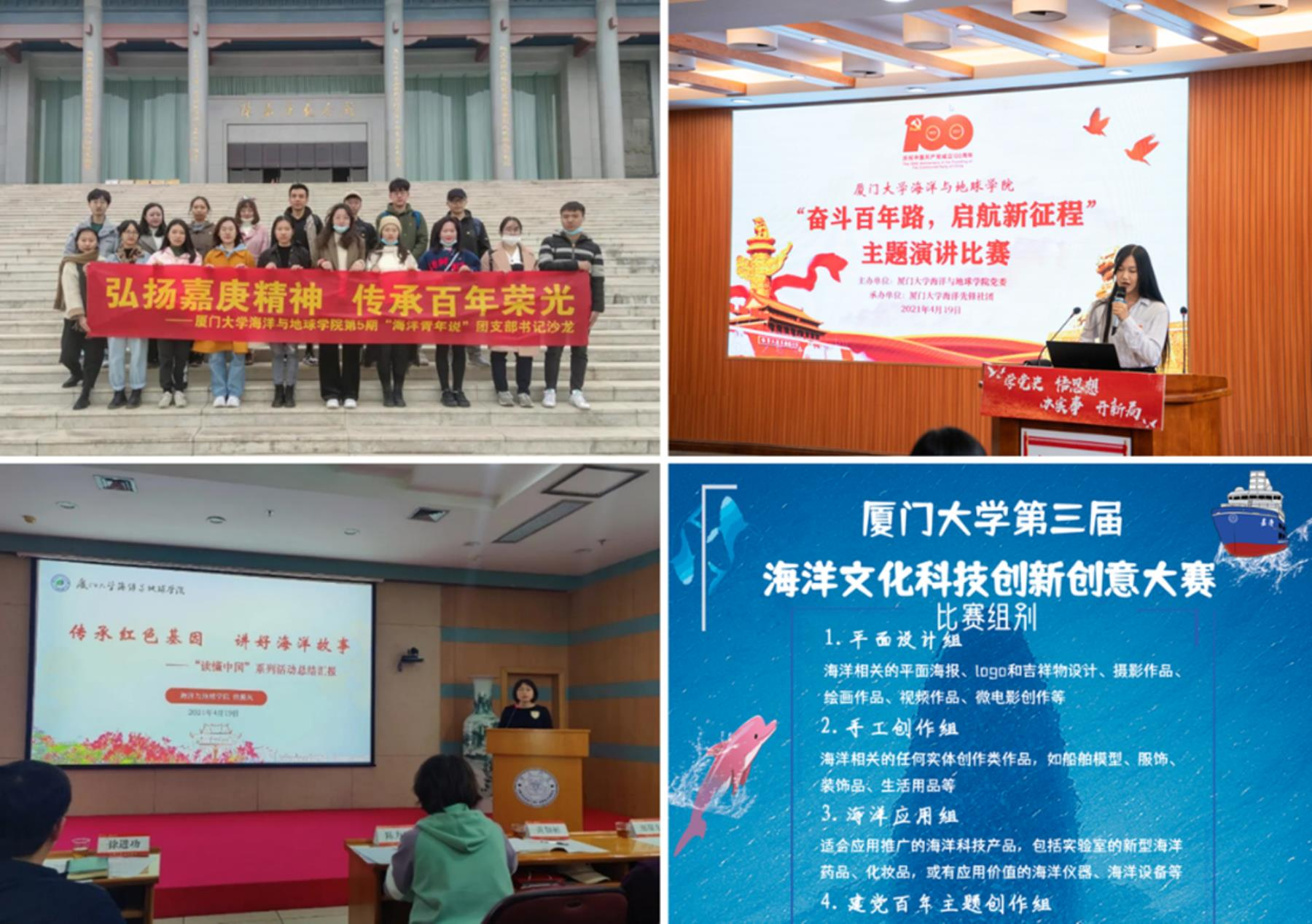 海洋与地球学院党委结合海洋学科特色开展党史学习教育,举办“海洋青年说”团支部书记沙龙、“奋斗百年路 启航新征程”主题演讲比赛等活动,引导学生带领师生通过回顾中国共产党走过的“百年路”,感悟思想伟力;展望即将开启新百年的“新征程”,凝聚奋进力量。