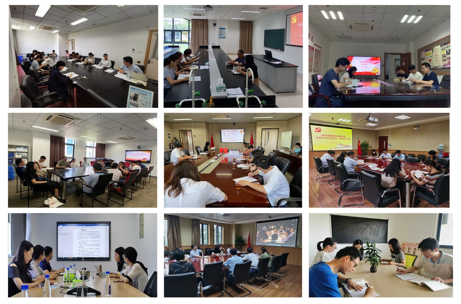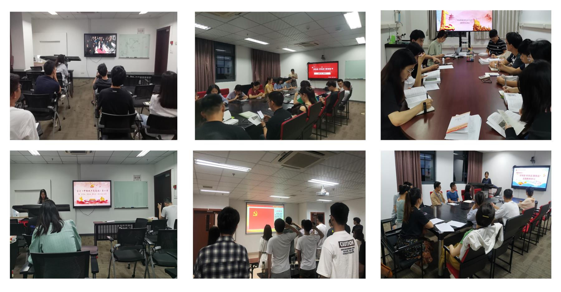 各师生党支部通过个人自学、支部领学、师生支部联合研学等方式,深入学习党史,在学思悟践中感受中国共产党的百年风雨征程。在支部集体学习中,各支部选用《中国共产党简史》、影片《建党伟业》、纪录片《百炼成钢:中国共产党的100年》等作为学习内容,内容丰富、形式多样,让支部党员从经典影视中感知革命壮举,从理论书籍中汲取奋进力量。