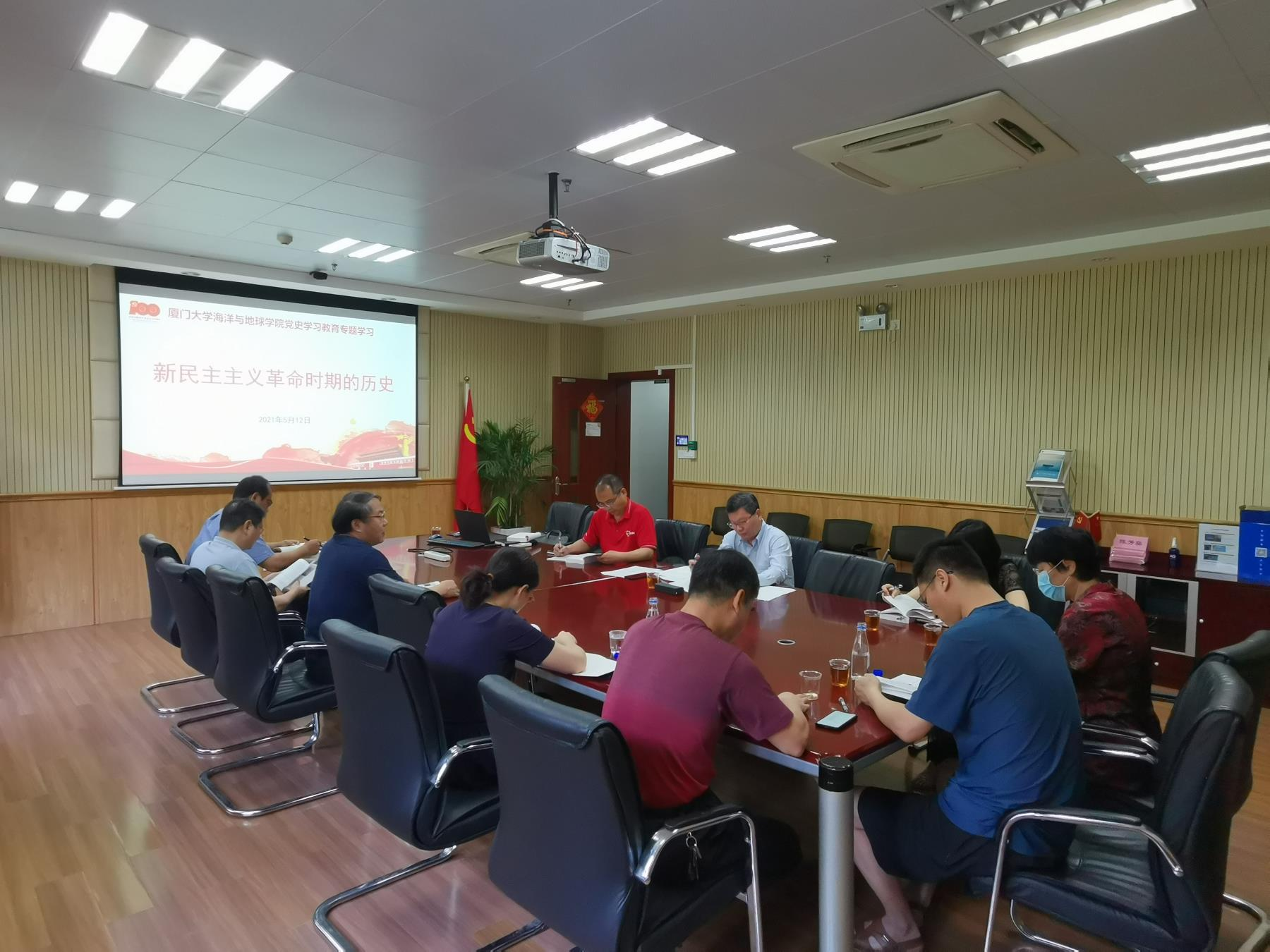 5月12日上午,海洋与地球学院党委理论学习中心组党史学习教育第一次专题学习研讨会召开,围绕“新民主主义革命时期历史”主题开展学习交流。学习研讨会由学院党委书记吴立武主持。