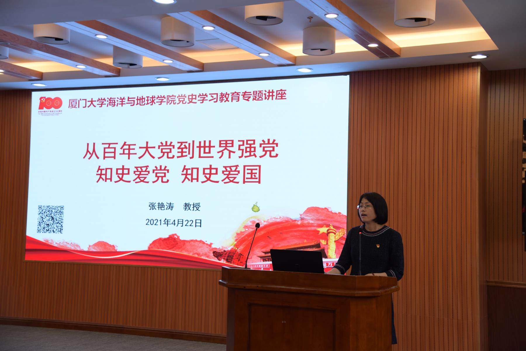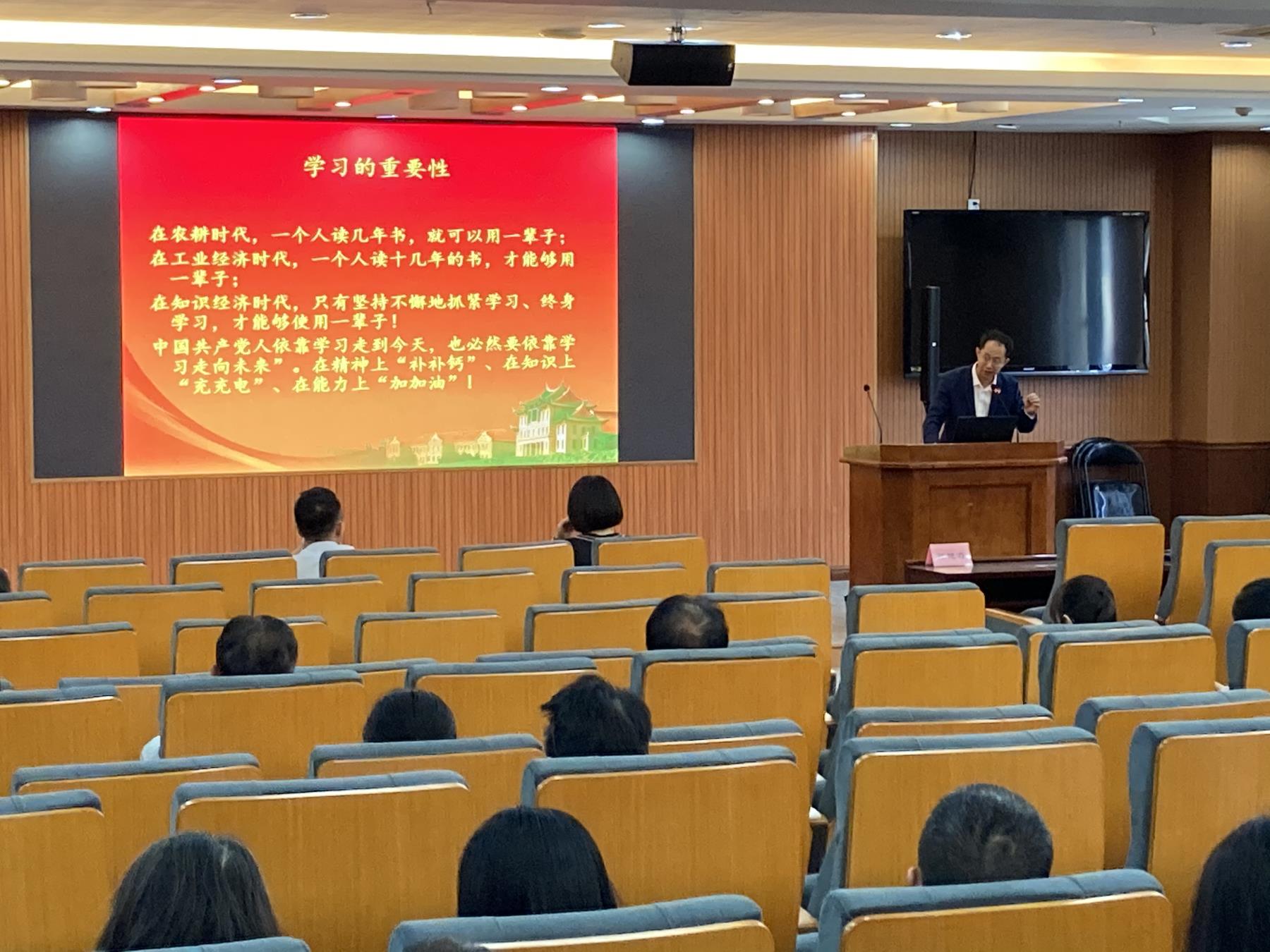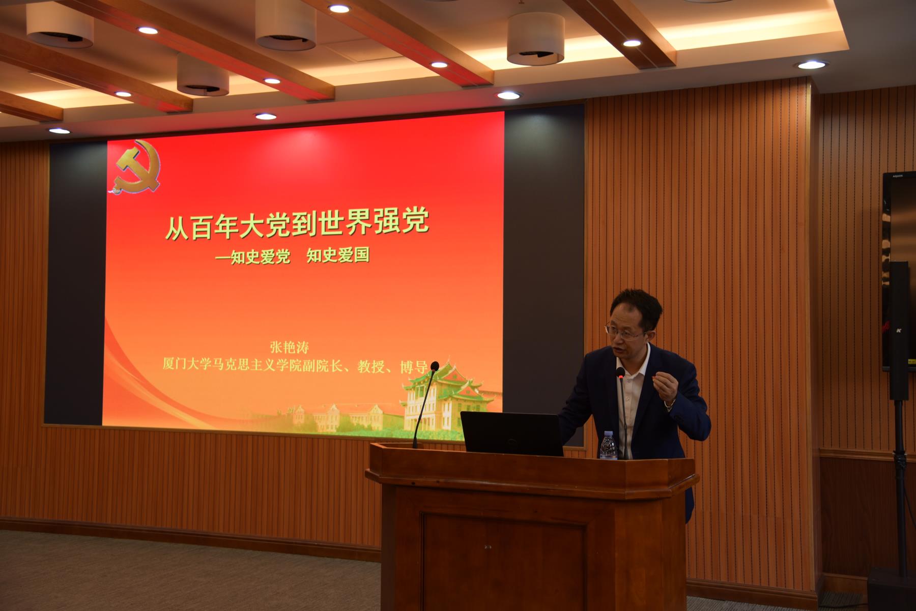 为深入贯彻落实习近平总书记在党史学习教育动员大会上的重要讲话精神,落实党中央、福建省委和校党委工作部署,推动学院党史学习教育走深走实,我院邀请了厦门大学马克思主义学院副院长张艳涛教授在希平楼C2-403开展题为“从百年大党到世界强党:知史爱党 知史爱国”的党史学习教育专题讲座。全院教职工参加此次学习,本次讲座由学院党委副书记唐腾凤主持。