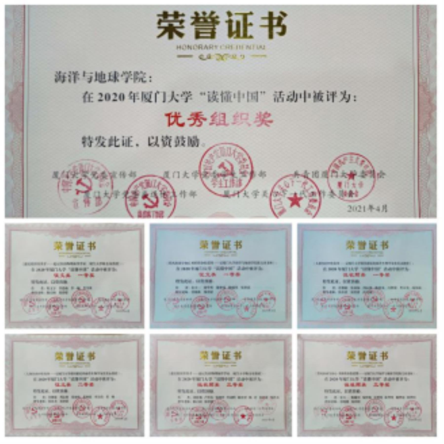 厦门大学2020年“读懂中国”活动海洋与地球学院获奖情况