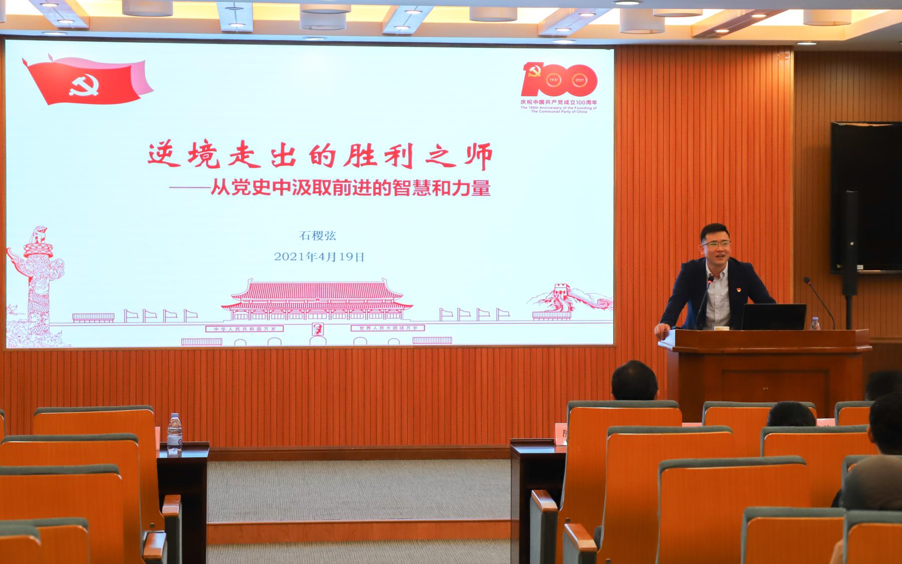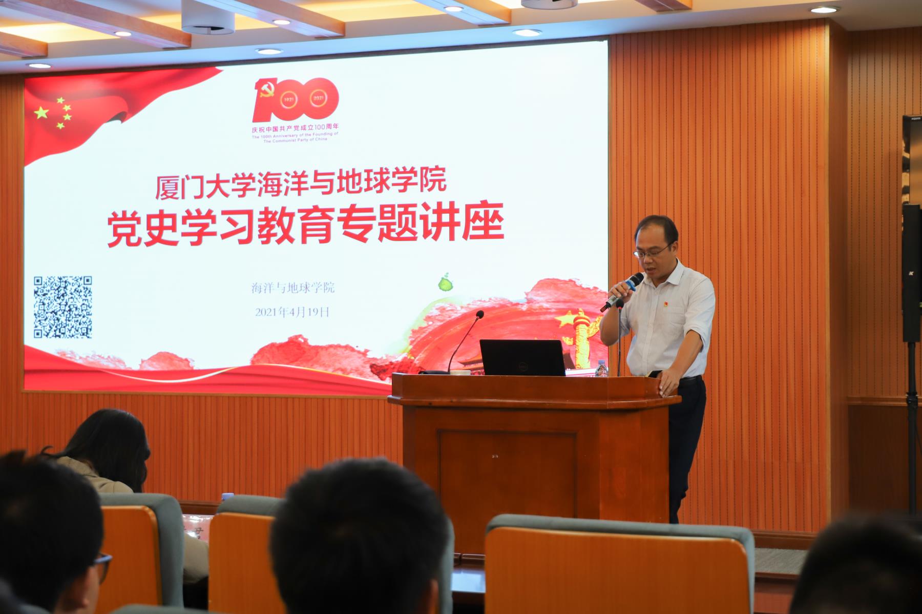 为学习贯彻习近平总书记系列重要讲话精神,深入开展党史学习教育,4月19日,海洋与地球学院党委特别邀请中国人民解放军海军某部政治工作处副主任石稷弦在希平楼C2-403为全院师生作一场党史学习教育主题讲座,讲座的题目为《从逆境走出的胜利之师——从党史中汲取前进的智慧和力量》。学院党委书记陈东军、党委副书记邱荣锋、团委副书记侯佳君、党务秘书曾隆隆以及100余名党员和入党积极分子参加了学习。讲座由学院党委副书记邱荣锋主持。