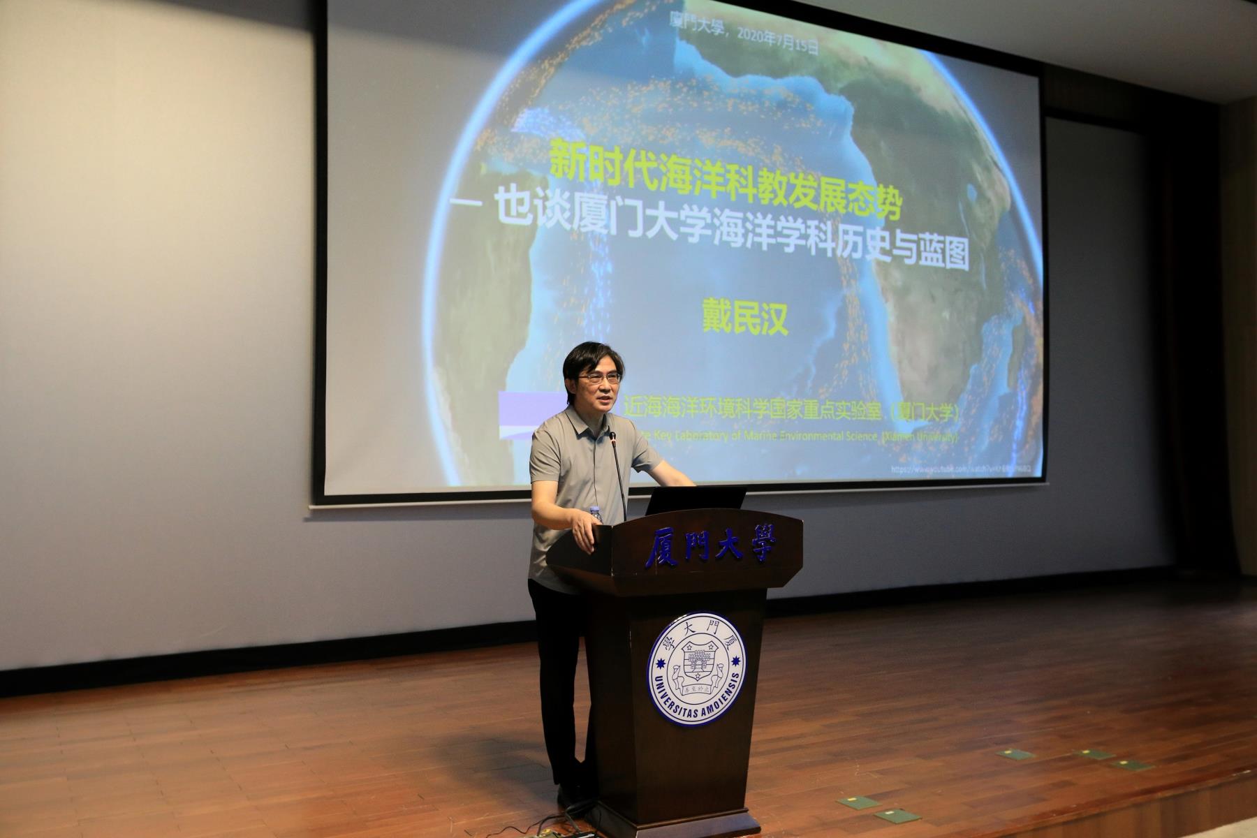 最后,戴民汉教授带领大家一同回顾了厦大海洋学科悠久的发展历程,并对未来学科的建设方向进行了展望。他表示,我们应该积极应对第四次工业革命为海洋科学领域带来的机遇与挑战,让科技创新途径由兴趣导向转变为“四轮”驱动,即学科驱动、发现引领、需求牵引及交叉融合驱动等四个创新途径,打通科技创新的“经脉”,推动新时代科研范式不断变革,探索一条科技引领高质量发展的新路径。同时,他希望厦大海洋学科能够抓住机遇、发挥优势、补足“短板”,持续推进国际一流学术舞台的搭建,构架良好的学科发展生态系统,培养出具有高素养、高素质、高情怀的新时代人才,为建设海洋强国、发展蓝色经济、推动可持续发展和生态文明建设不断贡献智慧和力量。