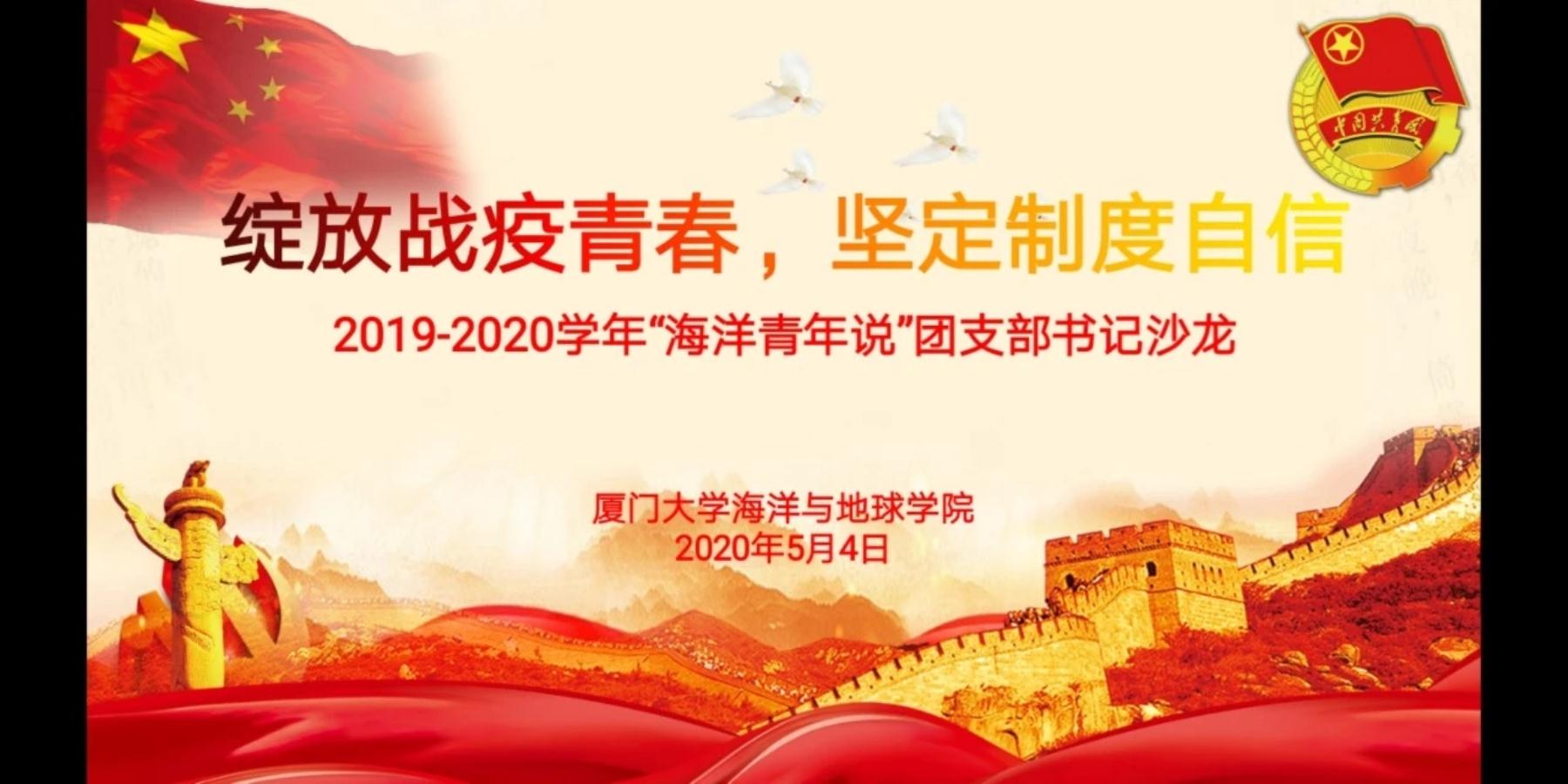 5月4日下午3:00,海洋与地球学院第四期“海洋青年说”团支部书记沙龙在线上顺利举办。本期沙龙由本科生团总支书记王宇担任主持,团委书记陈启妍、副书记侯佳君出席了本次活动。本研共有21名团支部书记们围绕中国的抗疫成就与制度优势以及对全球抗疫做出的突出贡献展开了激烈的讨论。沙龙最后,与会成员共同学习了5月3日习近平对新时代青年的寄语。与会团支部书记们深受鼓舞,纷纷踊跃发言、各抒己见,表达了自己用实际行动助力中国腾飞的坚定决心。