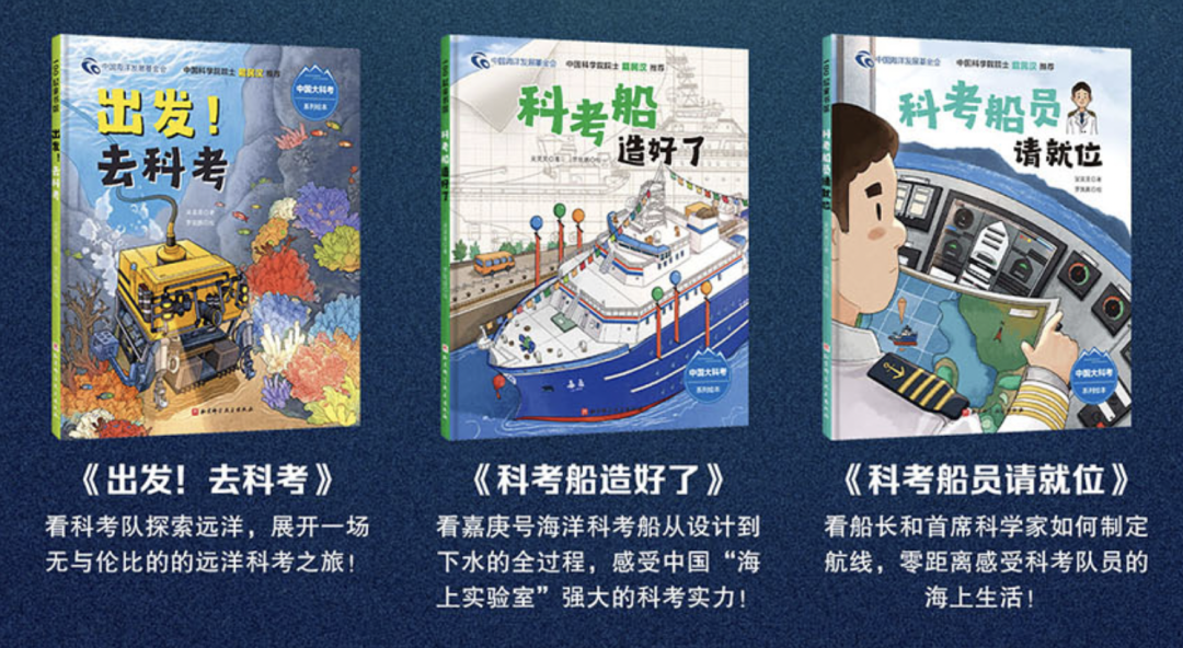 2018年的南海航次结束以后,以此次南海航次所见所闻为故事主线,吴昊昊撰写了科普读物《中国大科考系列绘本》9册中的3本,于今年7月正式出版。