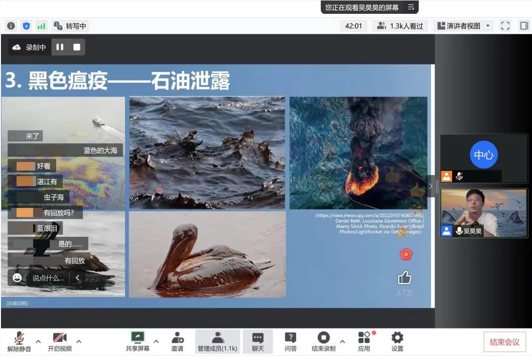 上个月,吴昊昊开展了几场“千人课程培训”,向即将参加云支教活动的3000名大学生志愿者科普海洋知识。