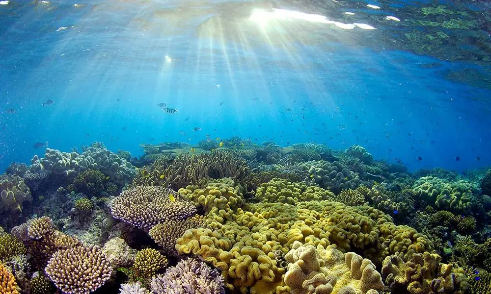阳光照在大堡礁的珊瑚上|WWF Troy Mayne