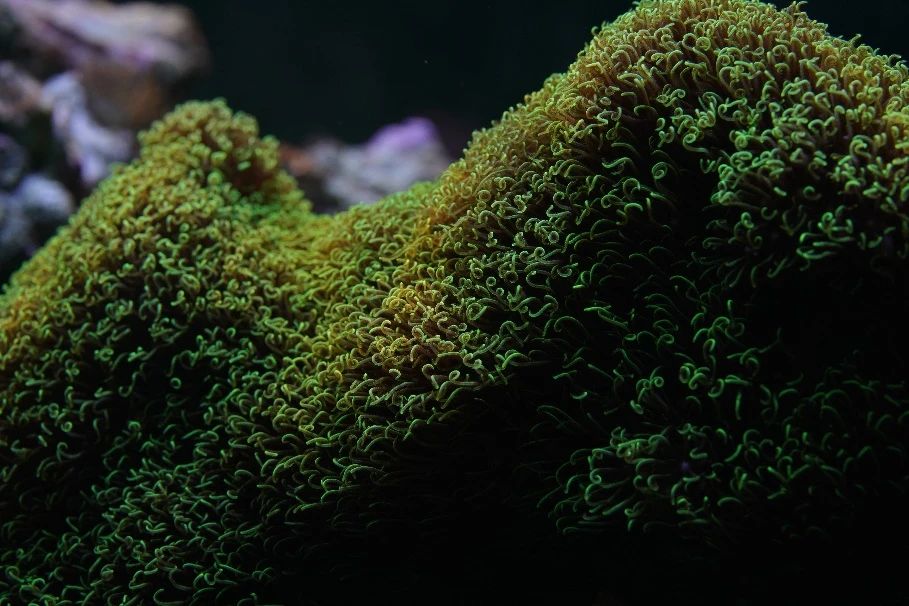 草皮珊瑚,极具观赏性,常常会被养殖在鱼缸中用以装饰。它在海底往往会迅速覆盖附近的岩石或珊瑚,在海底形成一片青青 “草地”。极强的繁殖能力也会给养殖草皮珊瑚的小伙伴们带来极大的成就感。