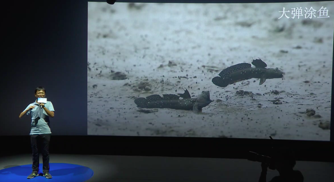 跳跳鱼很有意思,是两栖的鱼类。当海水涨过来的时候,它会像正常的鱼类一样,就在水里面获取氧气来呼吸。当海水退去以后,它在光滩上面还是照样能生活。它在离开水的时候它会用力含一口水在嘴里面,然后透过这口水来获取氧气。同时它会在水坑里面打个滚,把身体的表面的皮肤弄湿润,表皮皮肤的这些毛细血管也能够有助于它从湿润的水体里面获取氧气。活动一段时间以后,它一定还要回到水坑里面再打个滚。